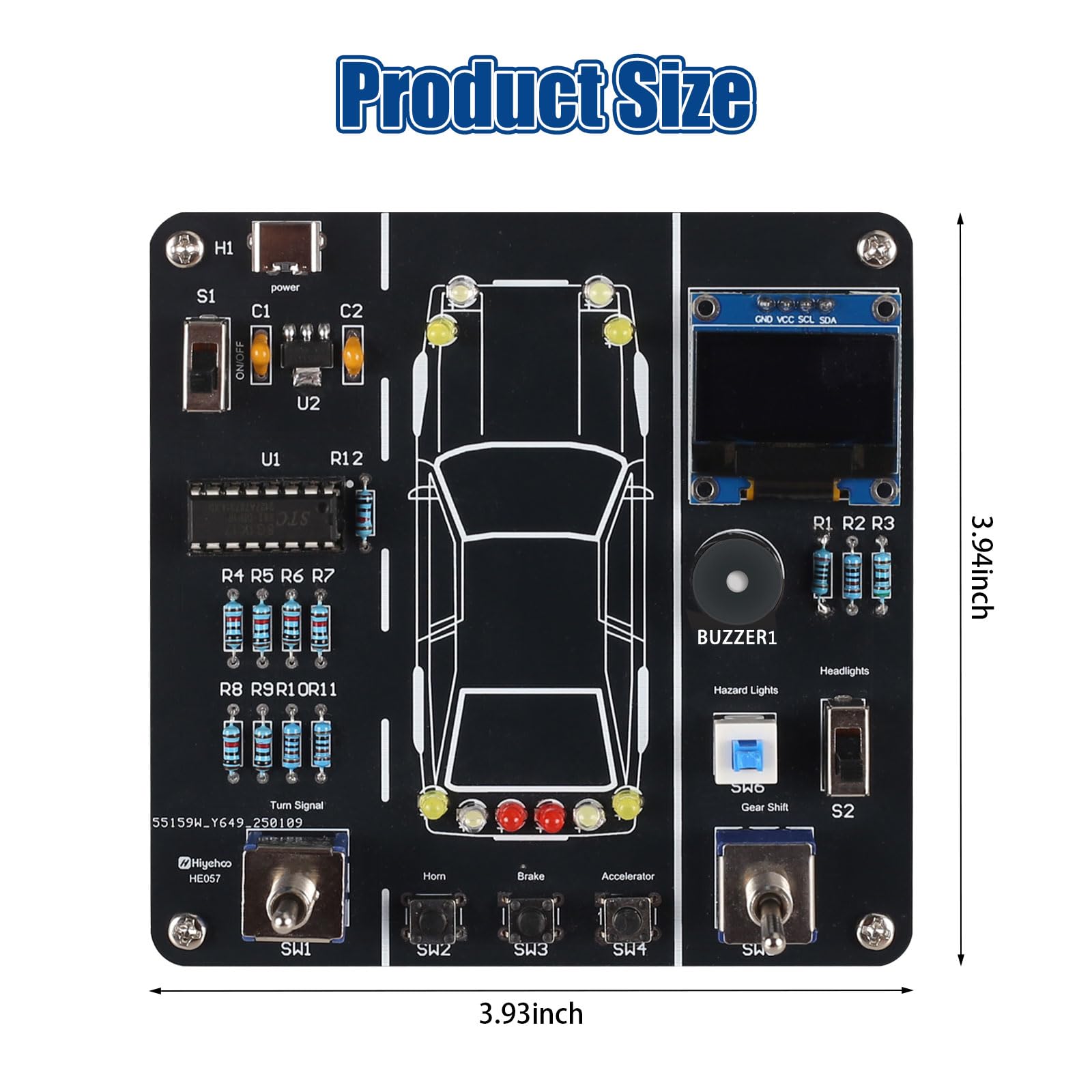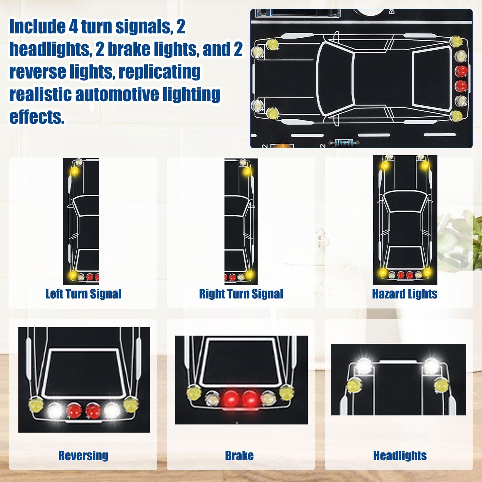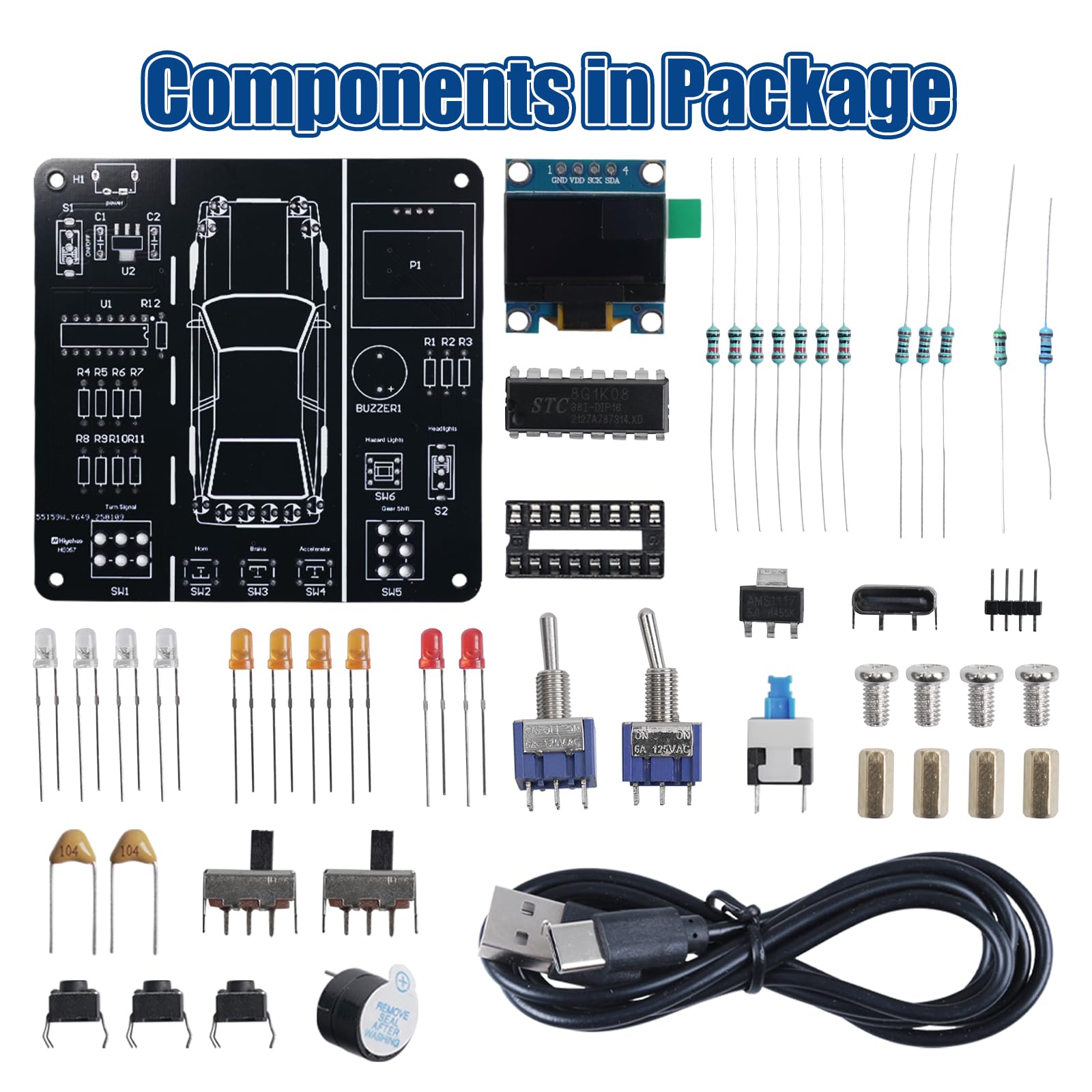 【Features and Functions】: The solder kit includes 4 turn signals, 2 headlights, 2 brake lights, and 2 reverse lights, replicating realistic automotive lighting effects. It also comes with an LCD screen that displays the current speed, allows for acceleration and deceleration control, and features a honking function, offering a complete driving simulation experience.