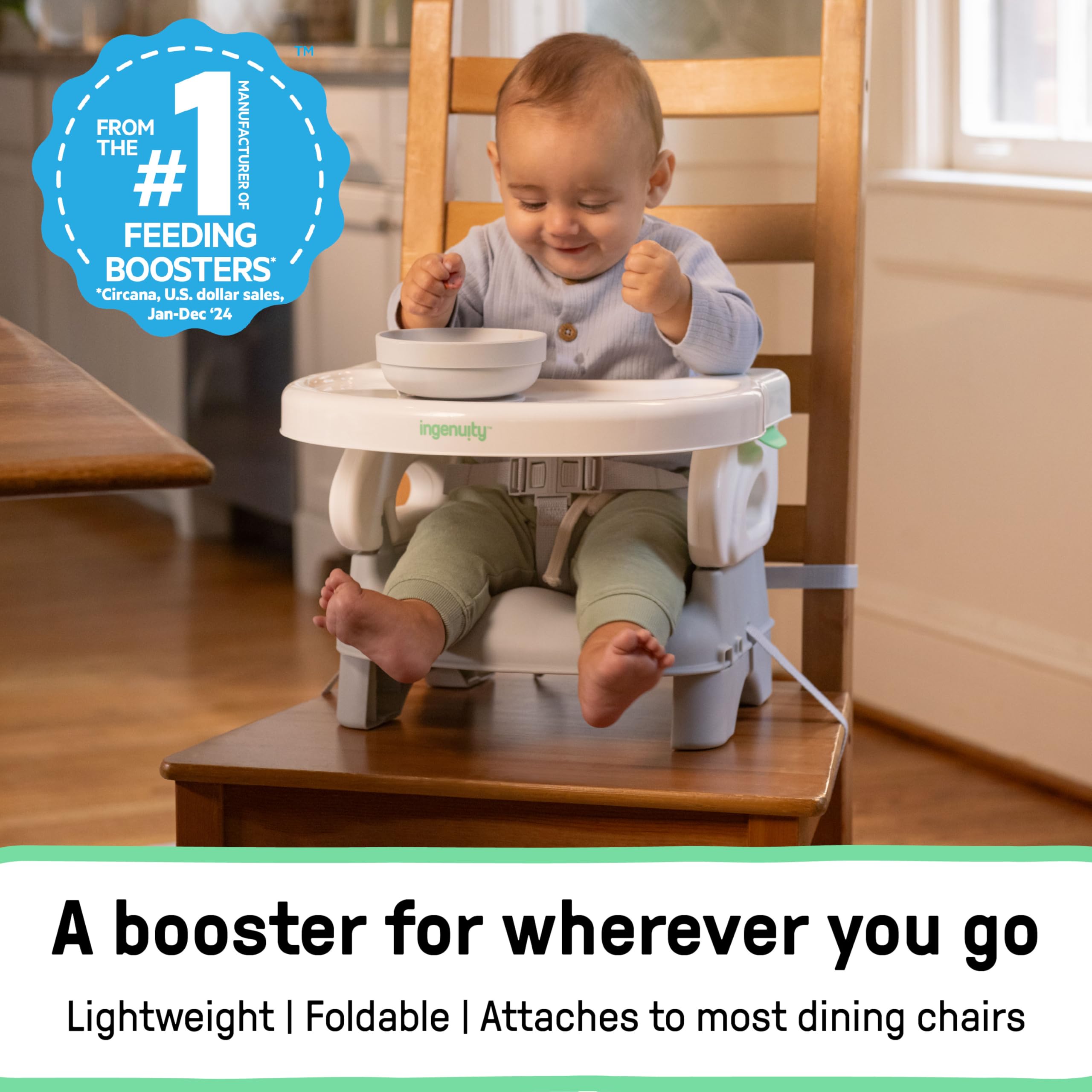 Ingenuity Deluxe Comfort Booster Seat for Kitchen Chair, Compact Fold, Portable, Lightweight, Toddler Booster Seat for Dining Table, from 6 Months to 3 Years – Grey