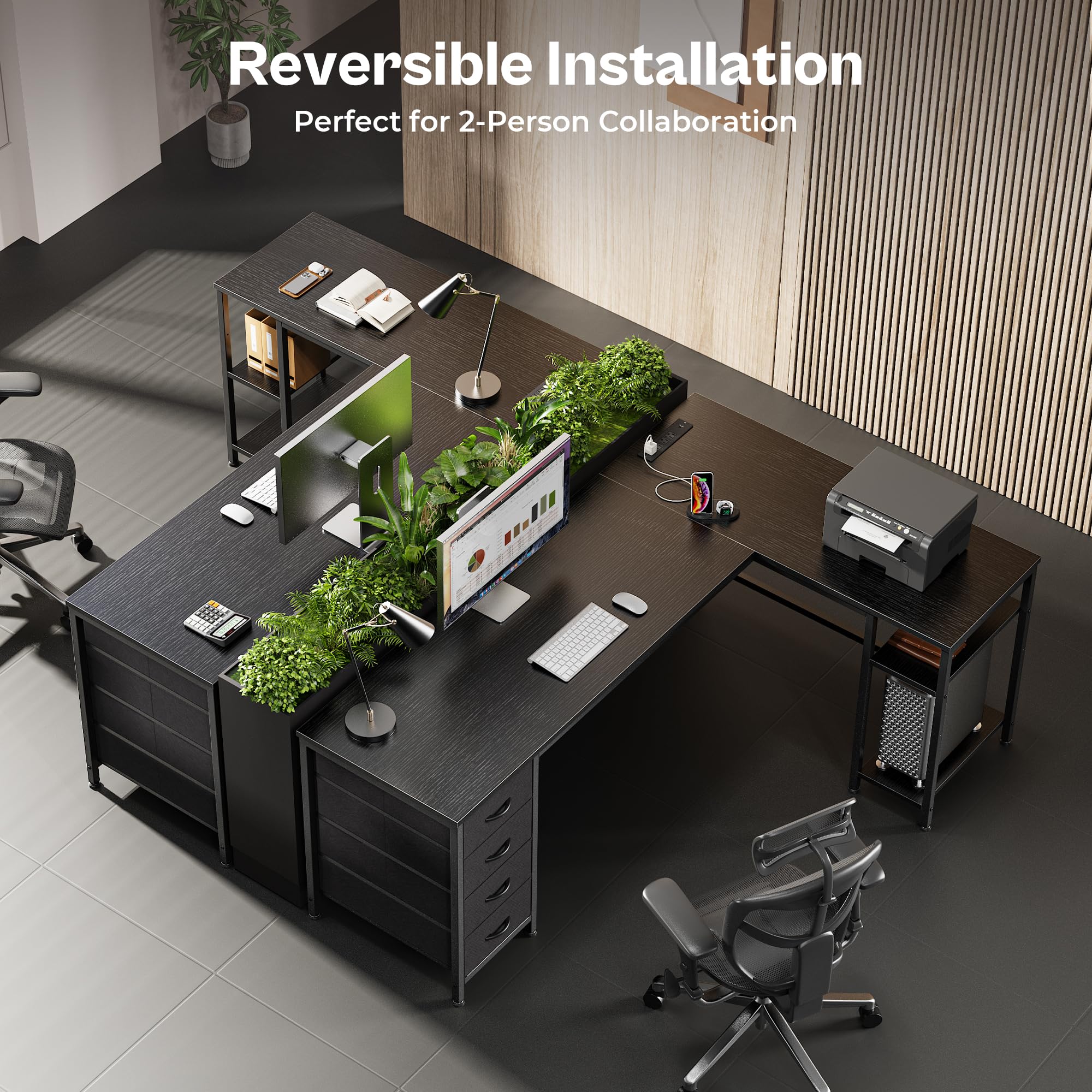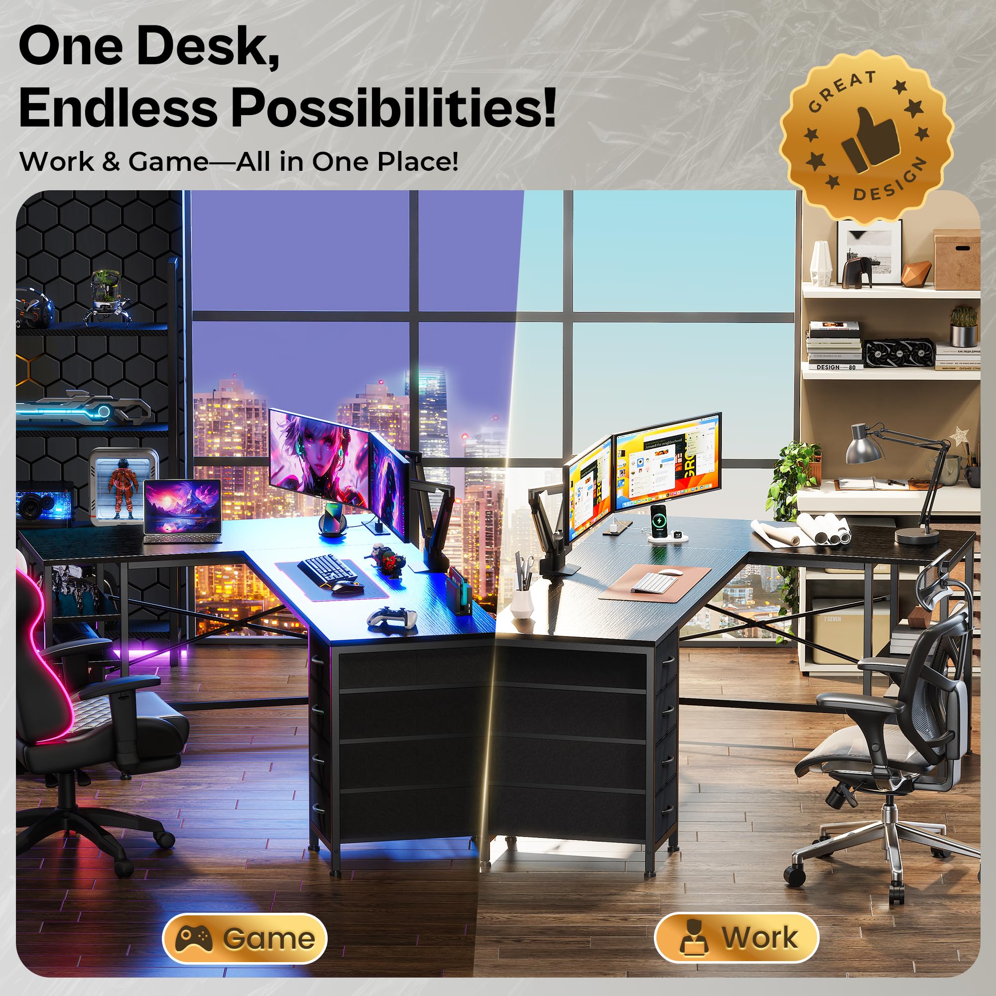 【Reversible Home Desk with Larger Legroom】Reversible L-shaped design lets you set up the work desk or gaming desk left or right to fit your space. Want a shared workspace or gaming room? Combine l shaped desks with storage for a roomy 2-person setup — great for home offices or open workspaces with lots of legroom