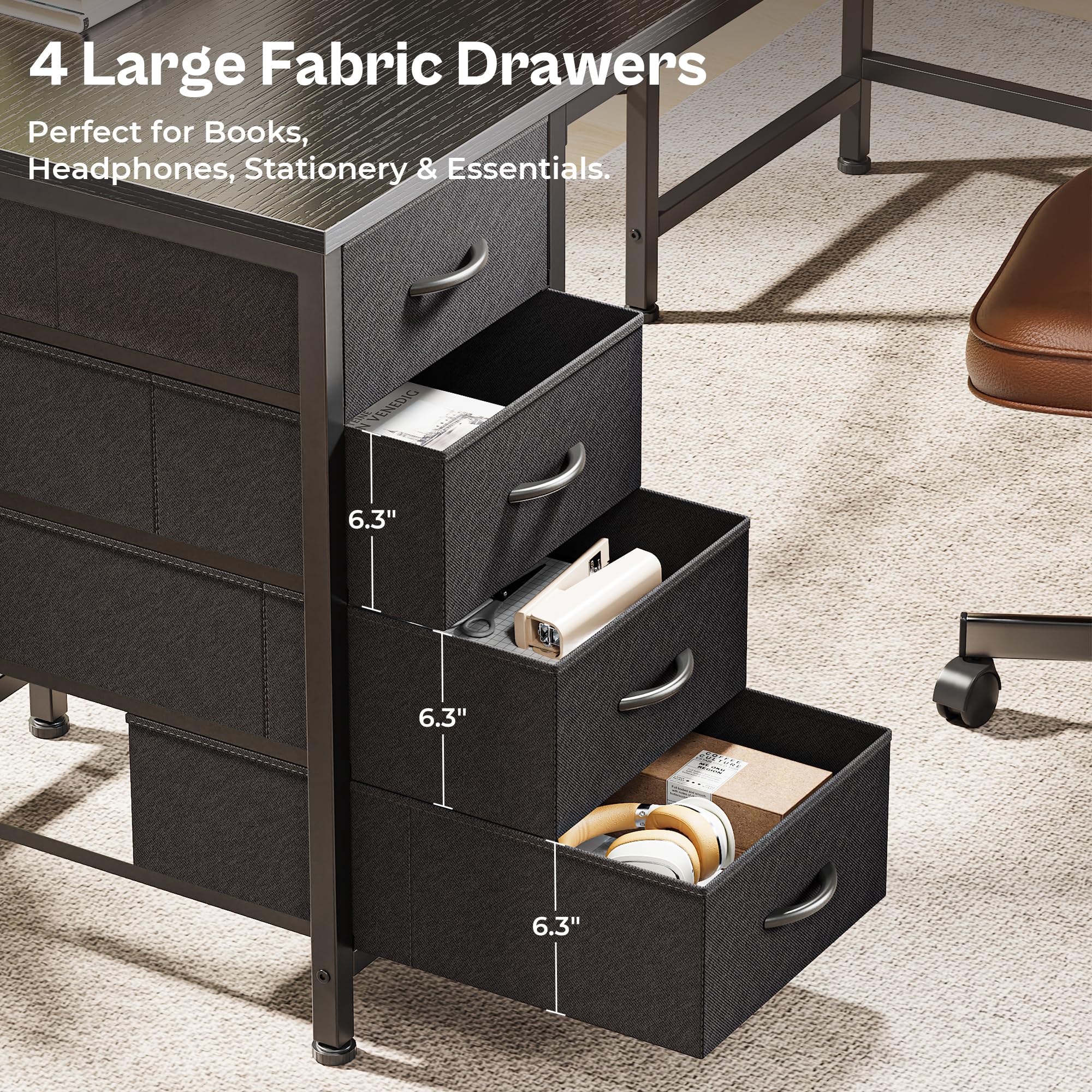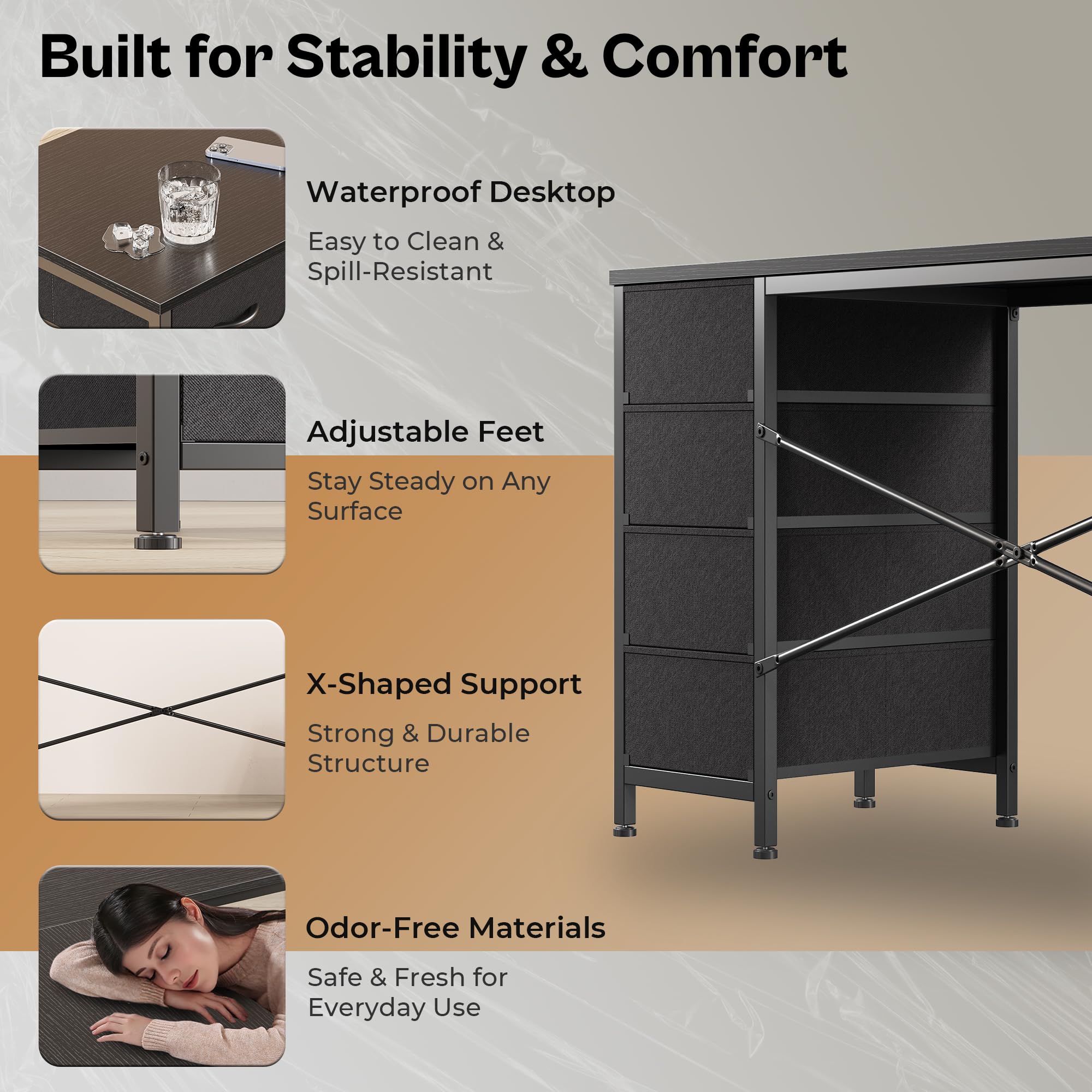 【Desk with 4 Fabric Drawers and Adjustable Shelves】This l desk comes with 4 fabric drawers for your everyday essentials, plus 2 adjustable storage side shelves. Whether you're storing books, printer paper, or office supplies, you can customize the space to match how you work with this computer desk with drawers