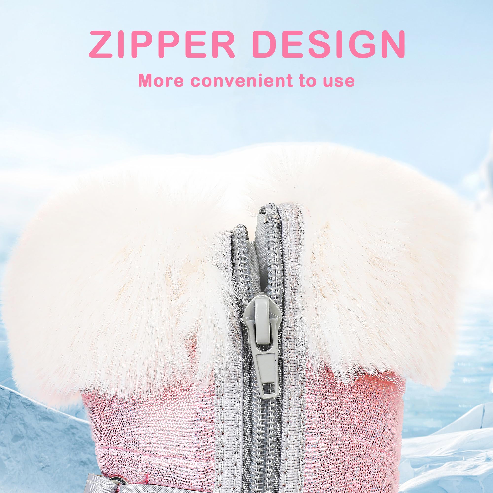 Featuring a thick faux fur collar and a fluffy warm lining, these snow boots for toddlers protects against the cold