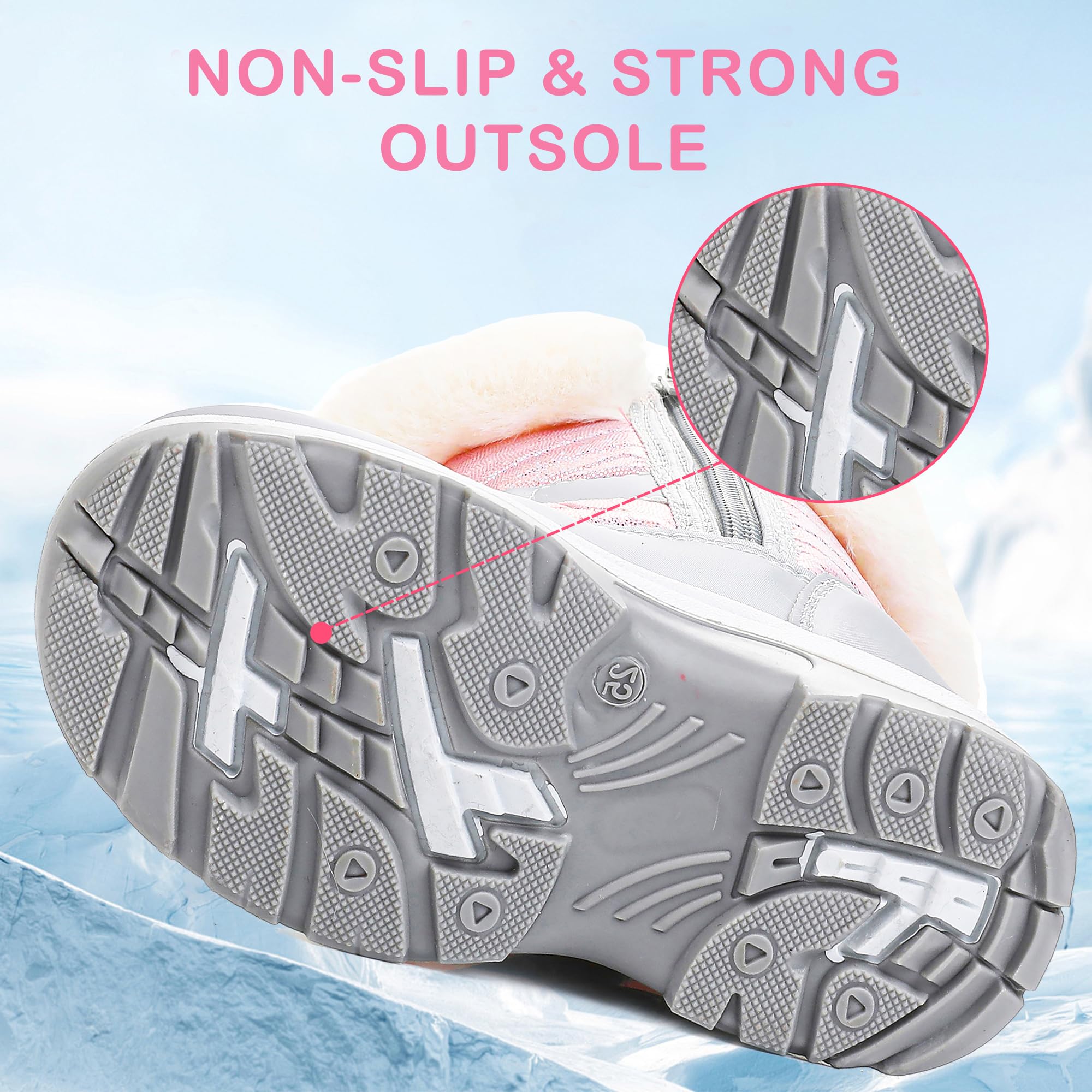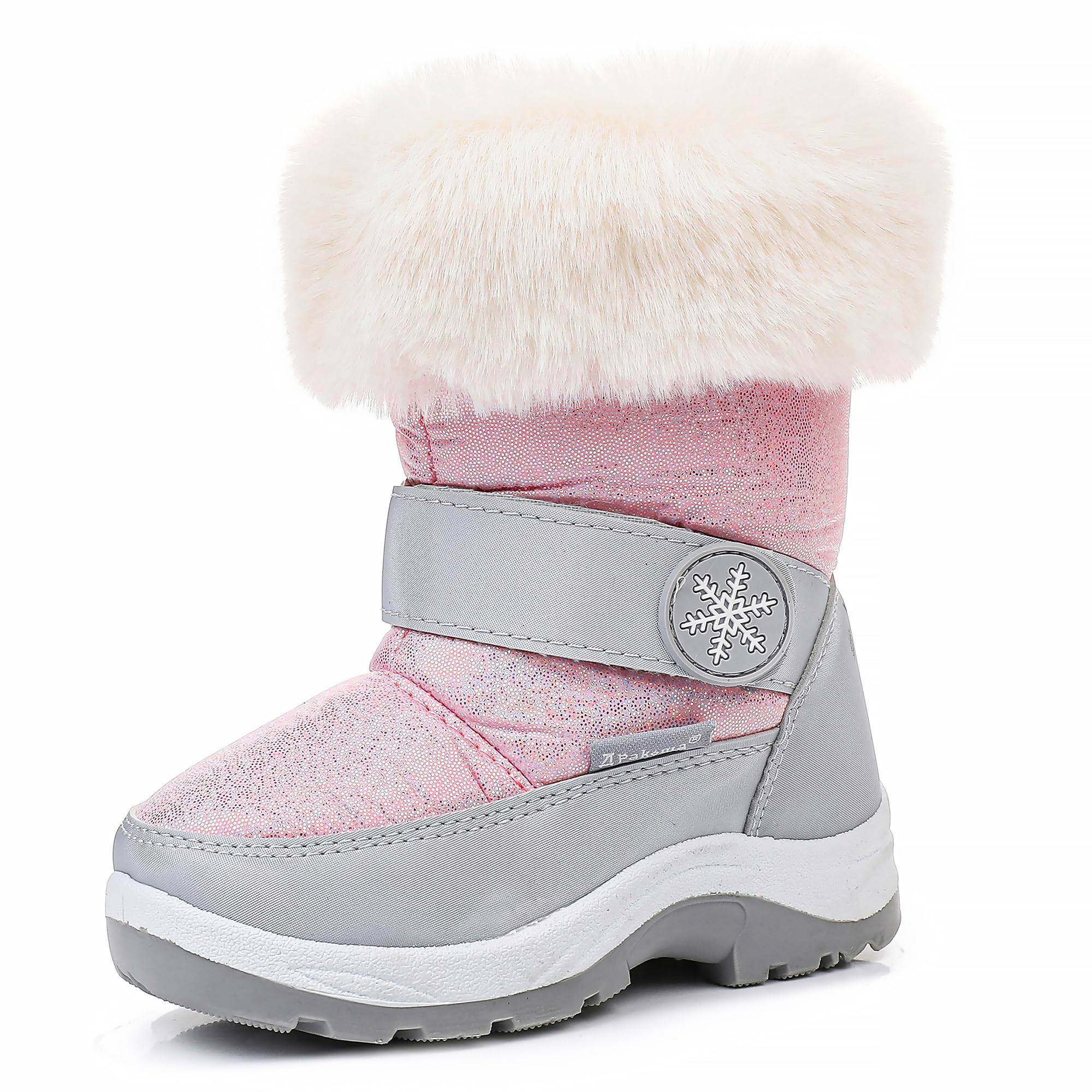 These winter snow boots for kids keep out rain and snow, keeping little feet dry and warm all day
