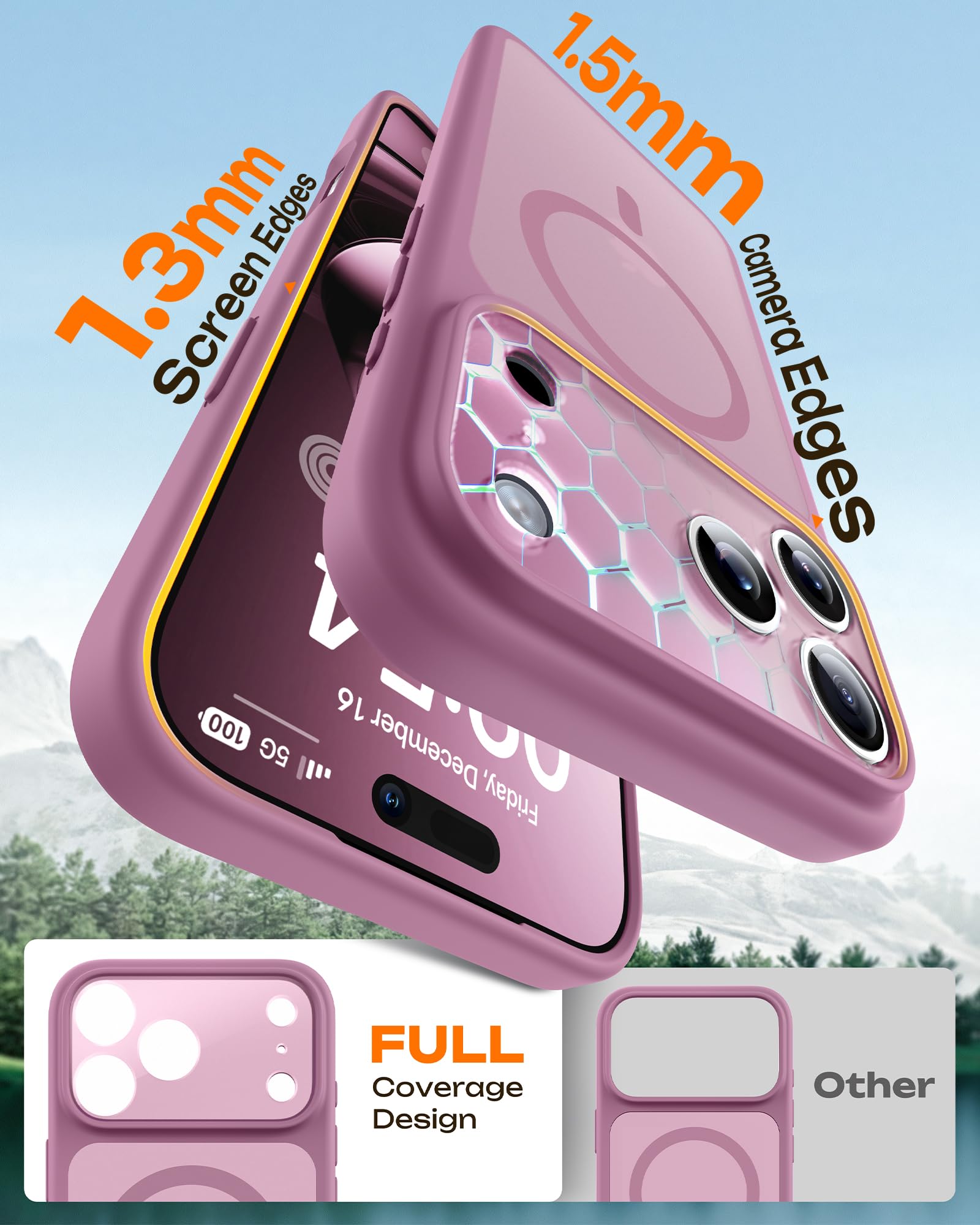 Embedded Magnetic Ring:Upgraded for iPhone 17 Pro Magnetic Case. Built-in magnetic ring never falls off. 18N ultra-strong power, perfect for all your Mag accessories. It holds up well on your Mag car mount, even over strong bumps