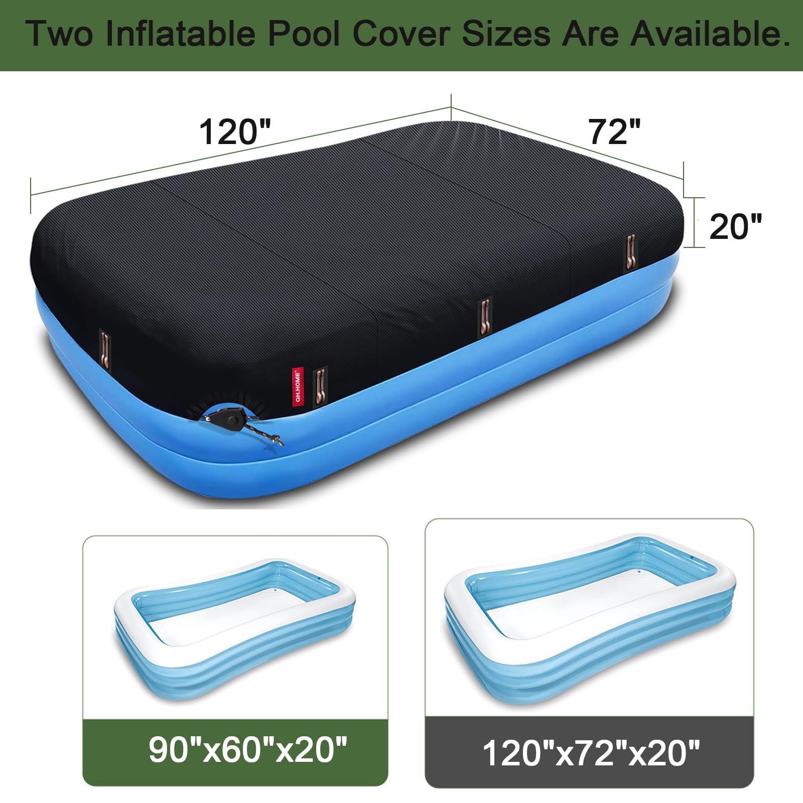 【UV Protection&Insulation】 PU-coated 500D fabric blocks 99% of UV rays (UPF50+ certified), protecting the pool water and cover from sun damage and preventing algae growth. Black fabric absorbs heat to raise water temperature by 8-12 degrees Fahrenheit during the day while reducing nighttime heat loss by 95% - dual-mode climate control that outperforms silver-coated pool covers.