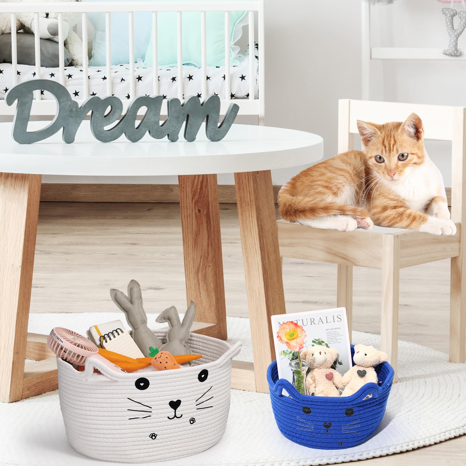 Great Gift: our cat basket can be used to place Easter eggs, Christmas gifts, or as a candy basket for Halloween; In addition, you can also share this cat laundry and toy gift basket with friends, family, children, cat lovers, neighbors at housewarming parties, family gatherings, birthdays, holiday parties, weddings, Valentine's Day parties or other suitable occasions