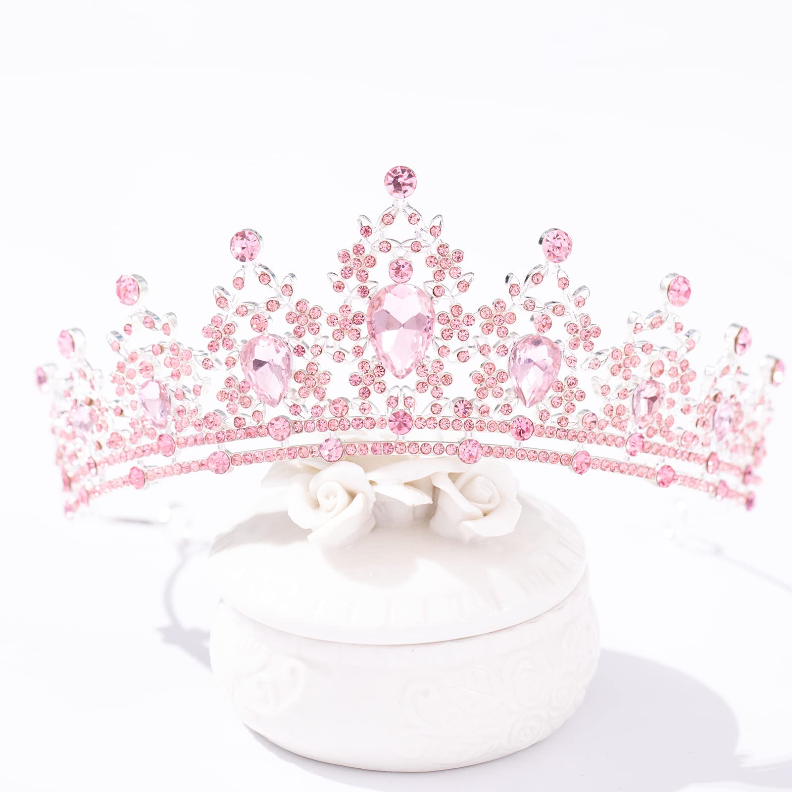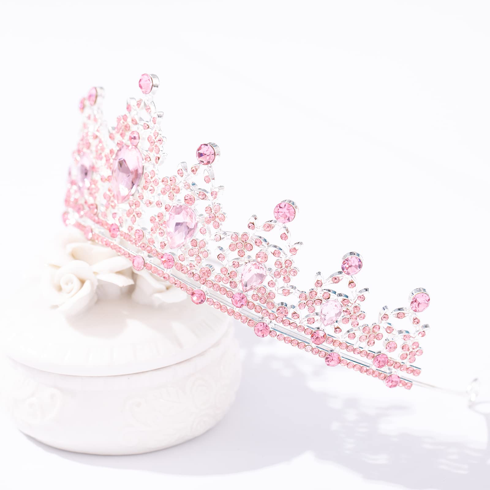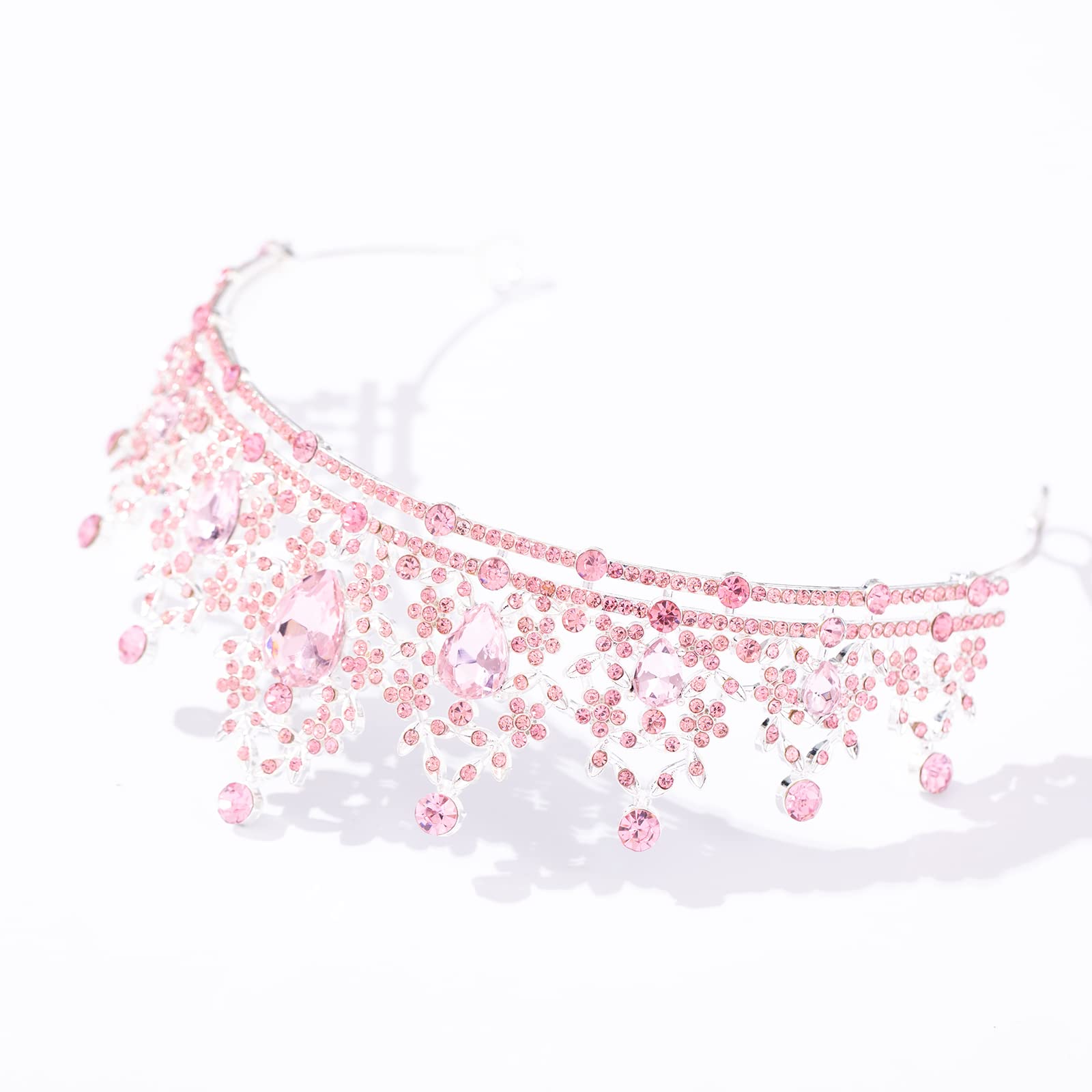 Sturdy Crown: This silver tiara is handmade by durable alloy and rhinestone. Pink Crystal Crown is beautiful,well-made and very solid and comfortable to wear, with hard texture for practicality and aesthetics.