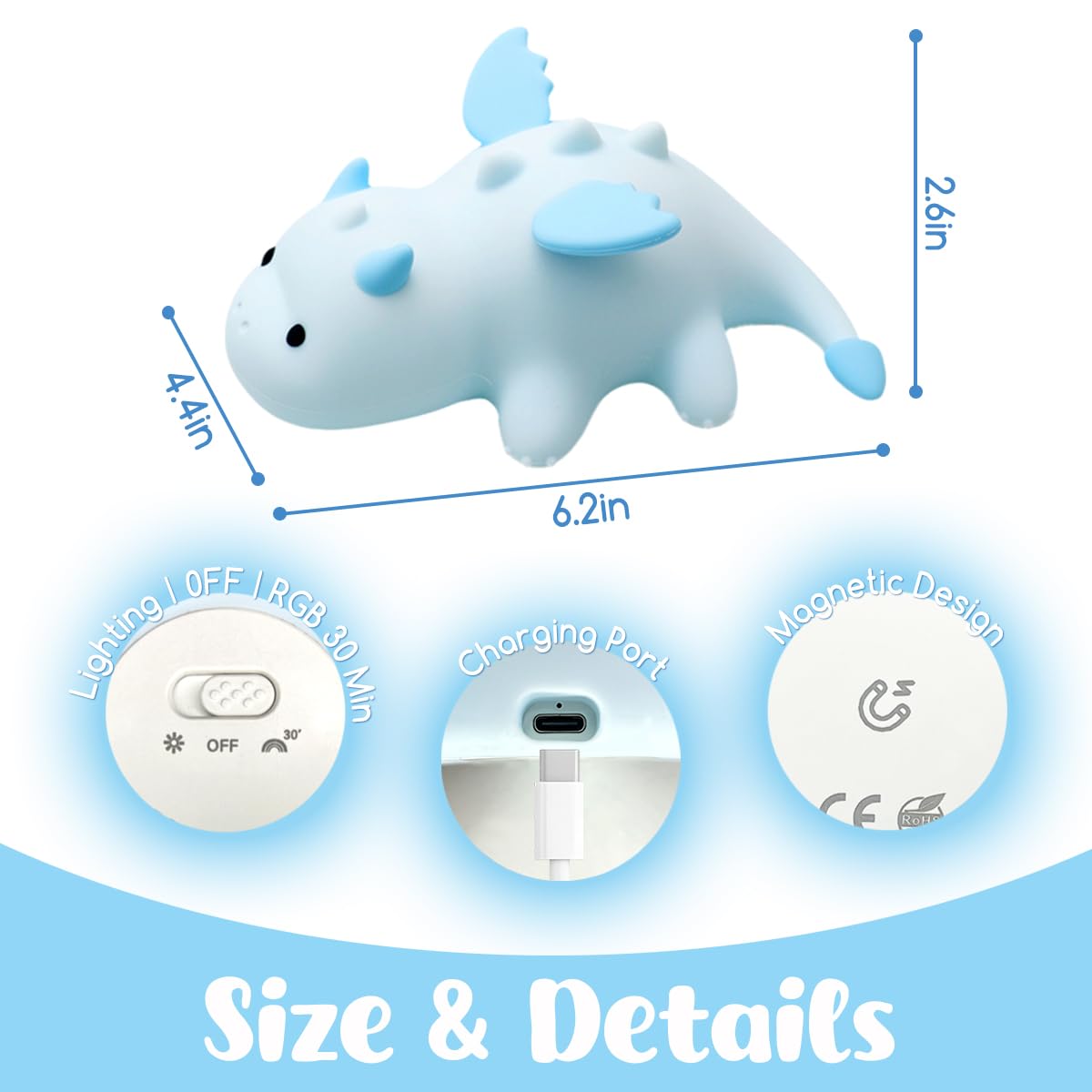 【Safe Kids Night Light】BPA free and food grade silicone material, safe night light with cute Dragon design, suitable for everyone including babies, it also has a pleasant and comfortable soft touch feeling