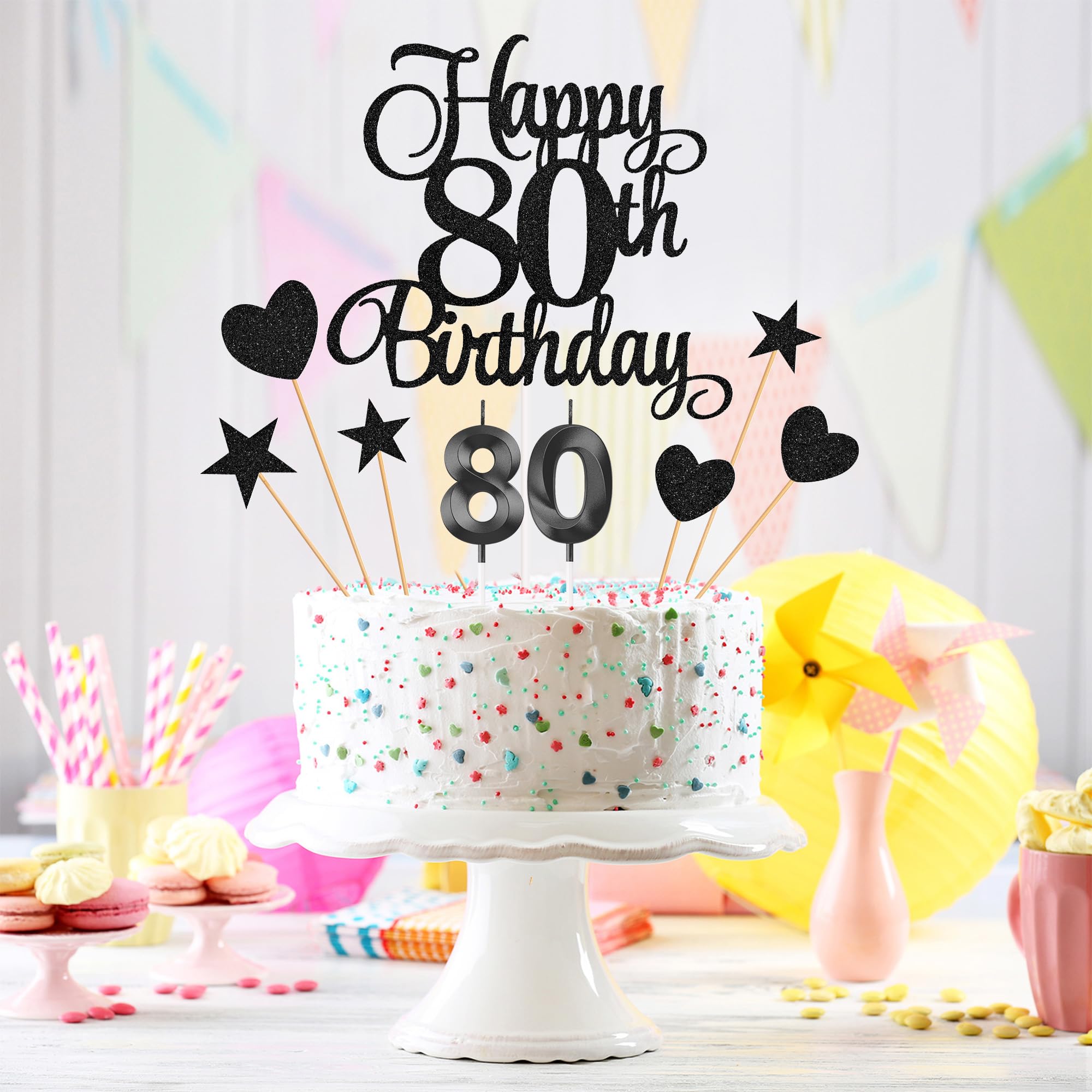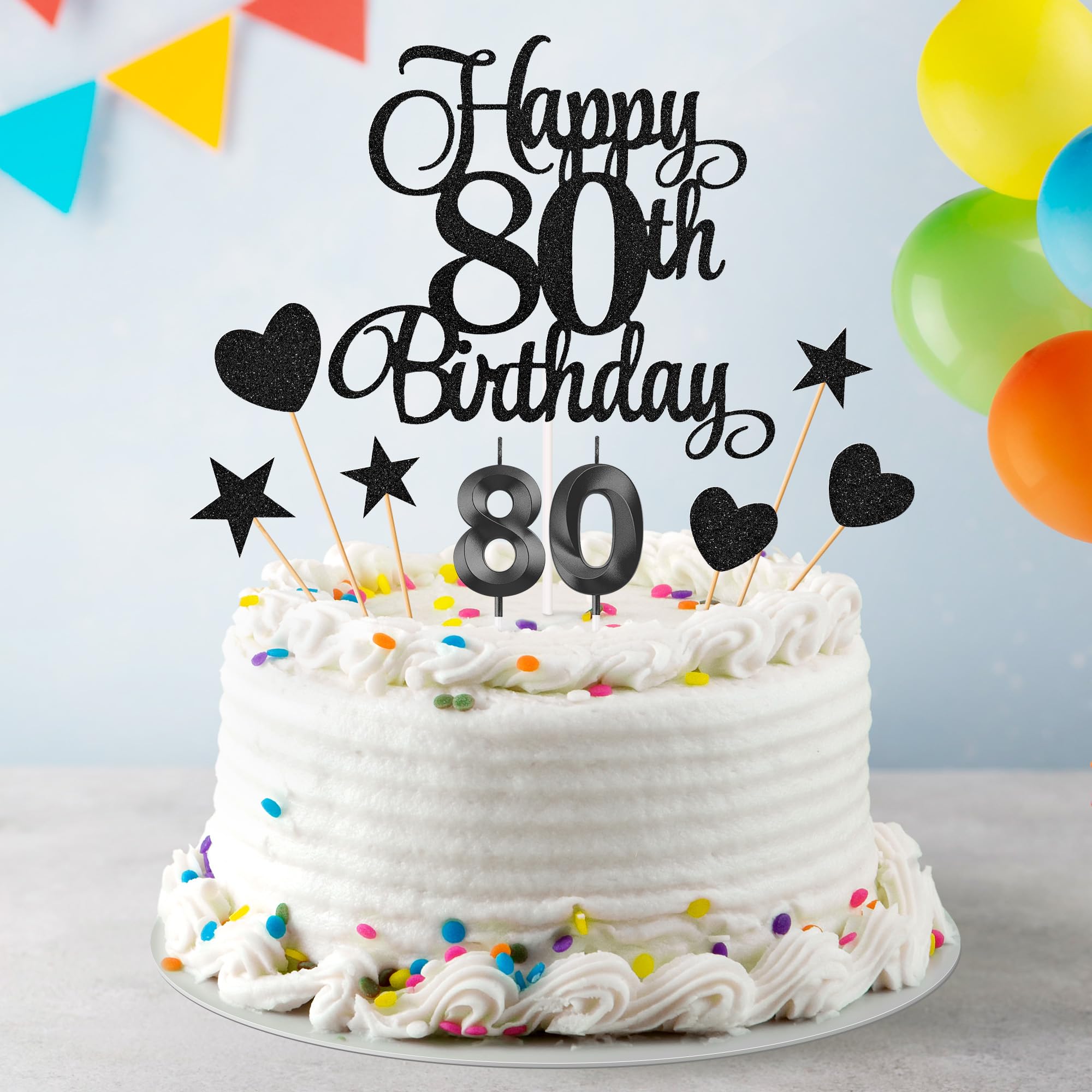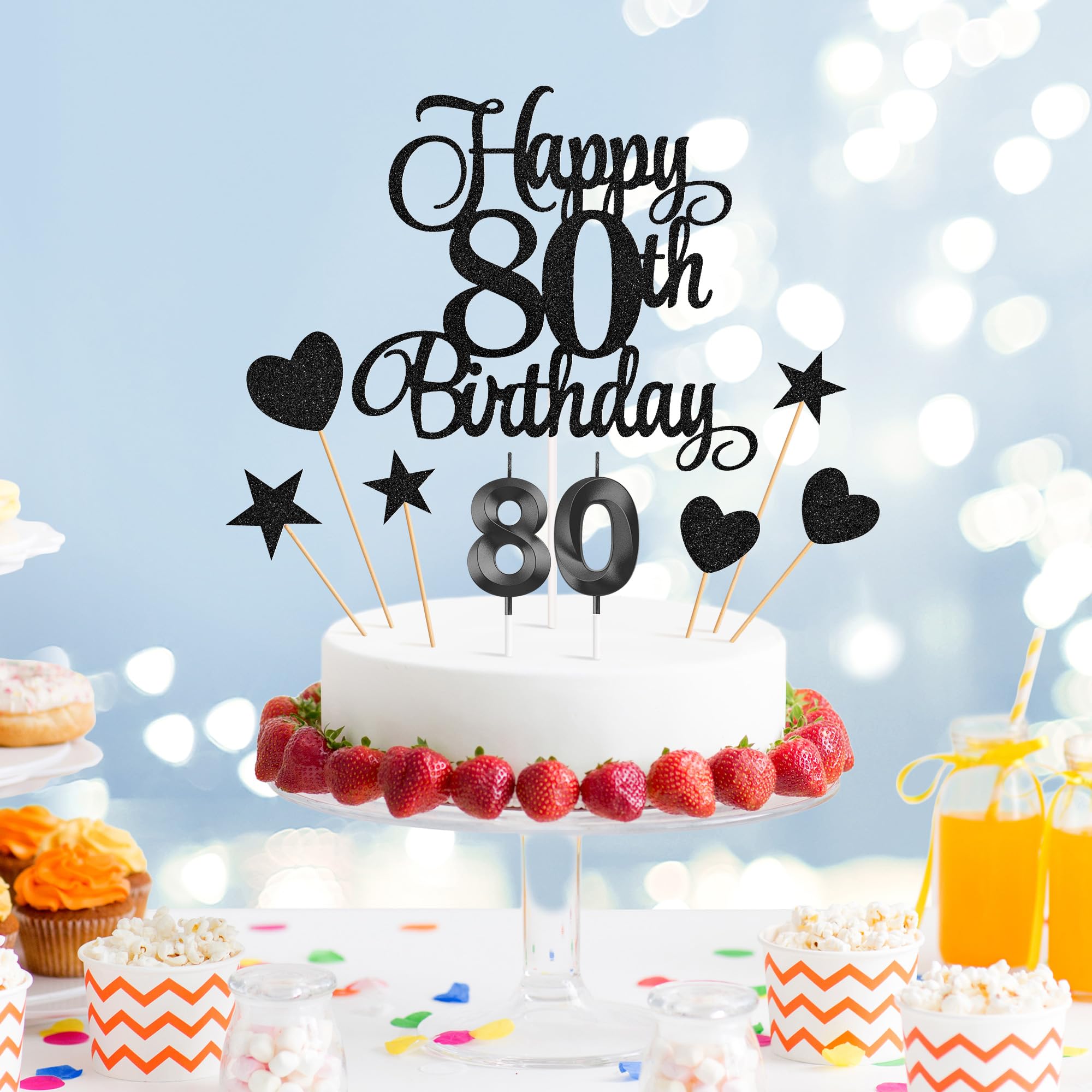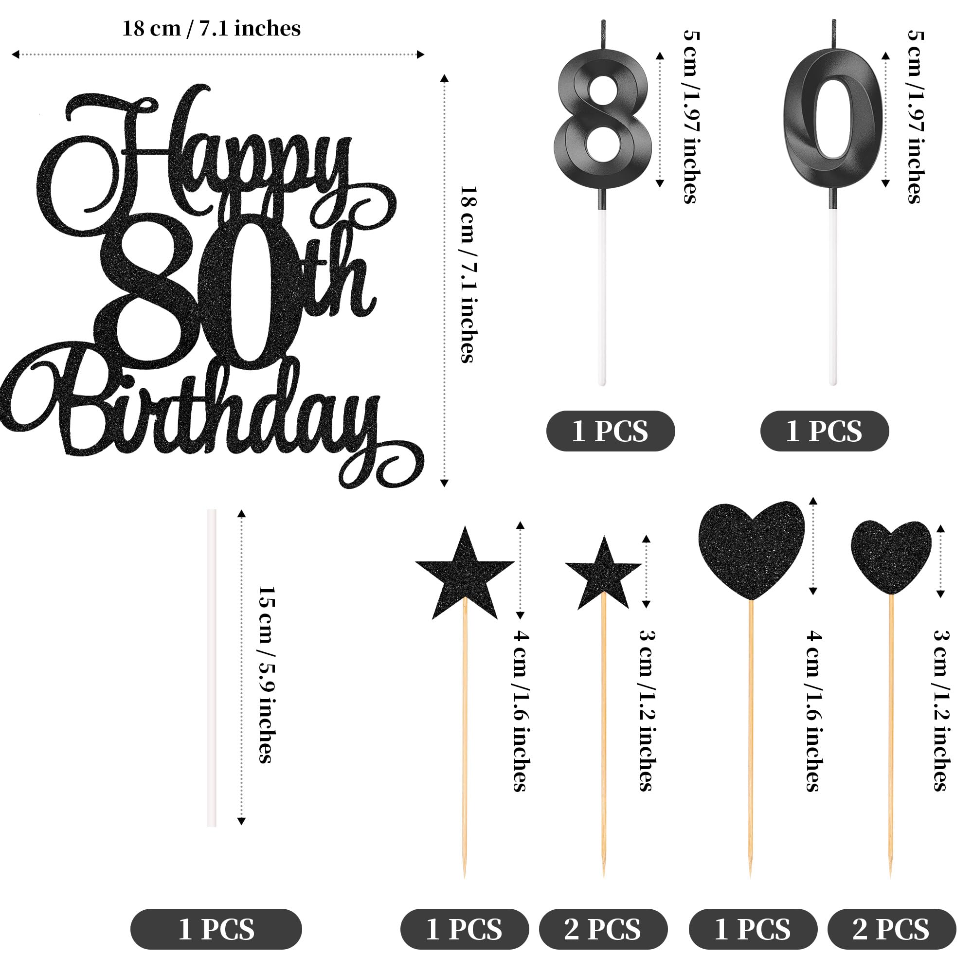 Package content: you will receive 1 piece happy 80th birthday topper, 3 pieces star cake toppers, 3 pieces heart cake toppers and 2 pieces numeral candles, it's a great addition to the 80th birthday party and anniversary party