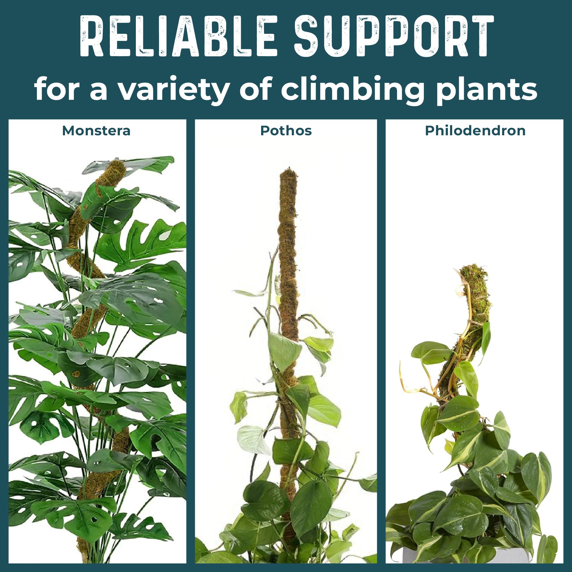 42-Inch Tall Support: Each moss pole stands at 42 inches, providing ample support for large, mature plants. This tall plant stake is ideal for indoor plants that require sturdy, reliable support to grow to their full potential.