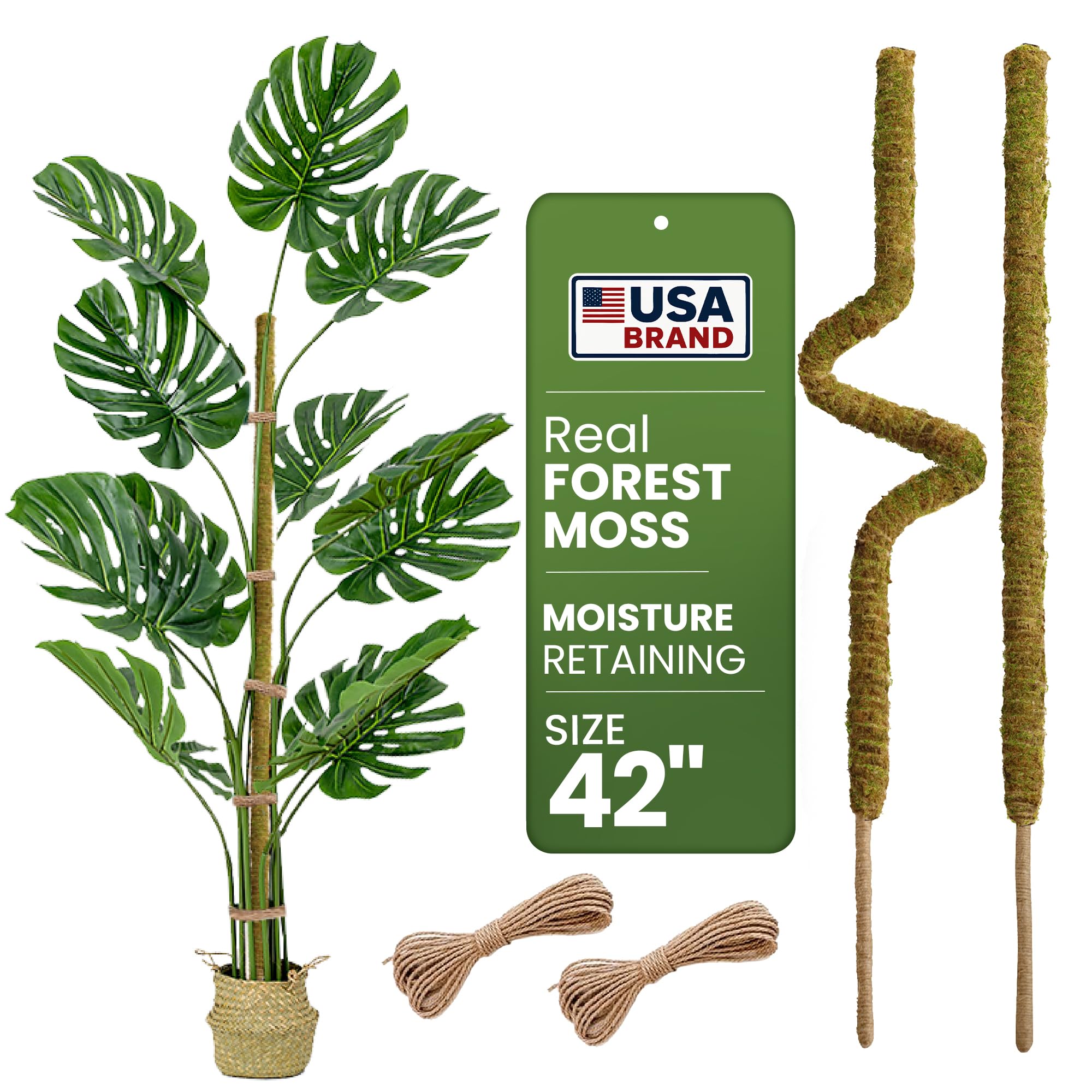 Natural Forest Moss Material: Made from sustainably sourced forest moss, our poles retain moisture, promoting optimal humidity for plant roots, encouraging healthy growth, and reducing the need for frequent watering. Includes 13 feet of natural jute plant ties to gently secure your plants to the pole as they grow, keeping them stable and supported.