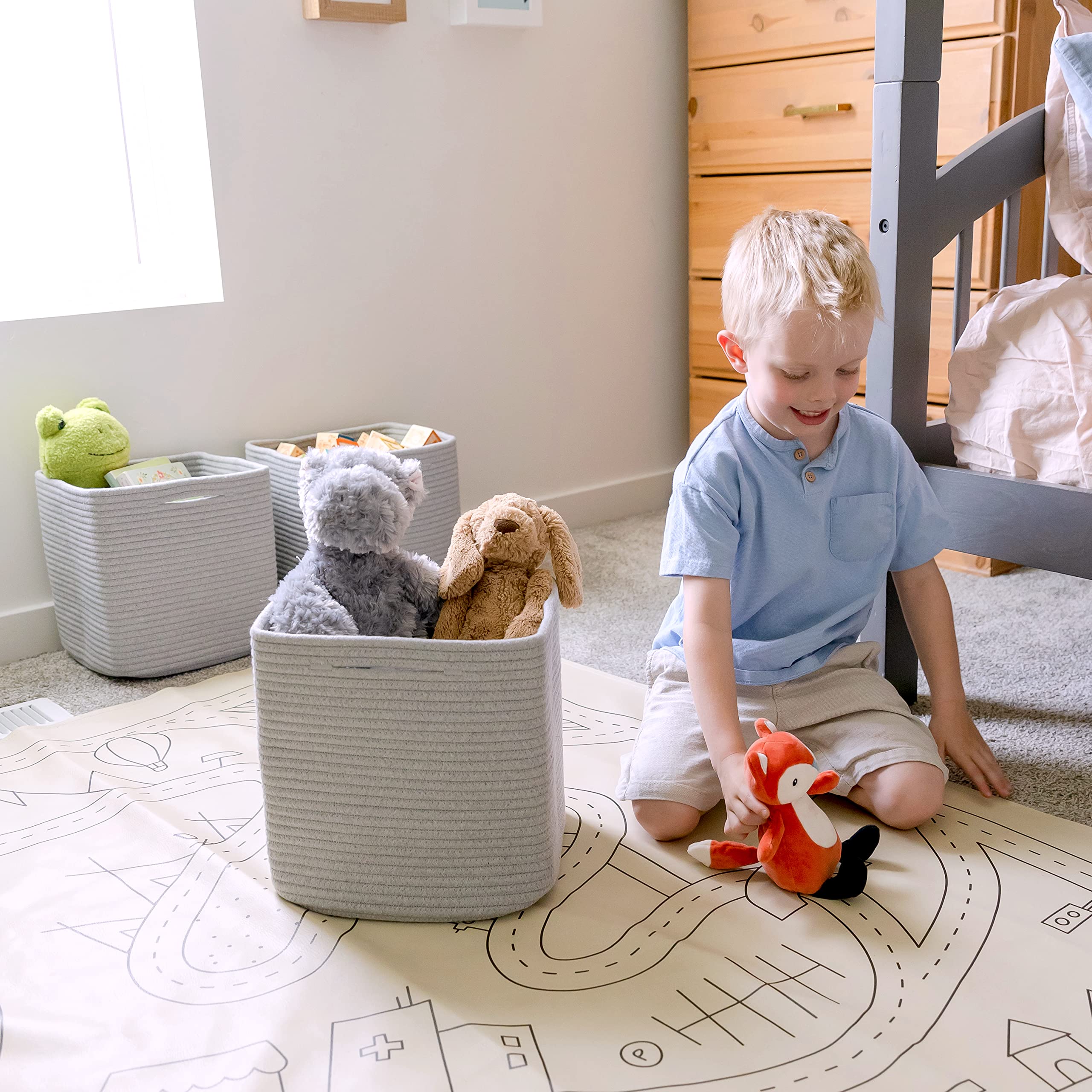 Safe, Natural Cotton Storage Basket: Crafted from the highest quality material in the market, our toy bins are oh-so-sturdy and ready to take on little humans with a knack for nom-ing. They’re 100% safe, so you can rest easy if teething toddlers take a nibble.