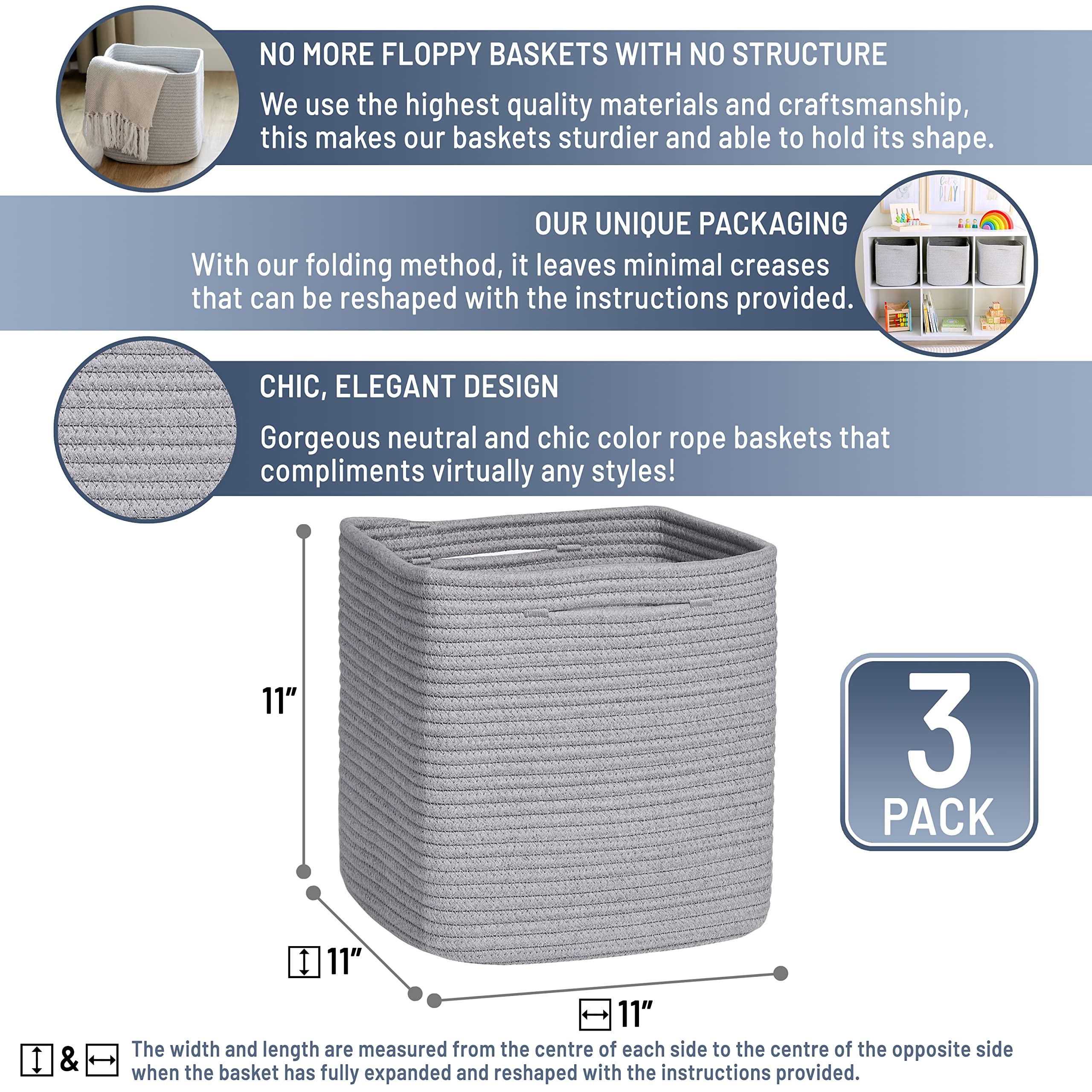 No More Wrinkly Floppy Woven Baskets: Prepare to have your socks knocked off (and then neatly organized), when you take a peek at our woven rope basket set. No more ‘permanently’ creased up, floppy storage basket here. Thanks to our unique folding method and quality rope, shaping is easy with the instructions provided!