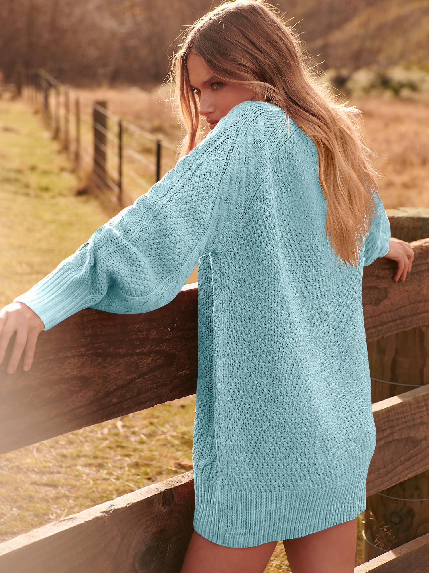 Features - The womens oversized pullover mini sweater dress is designed with long sleeve,crewneck , chunky and loose fit, tunic length , the weave type is cable knit,which is popular and trendy style in fall and winter 2025.