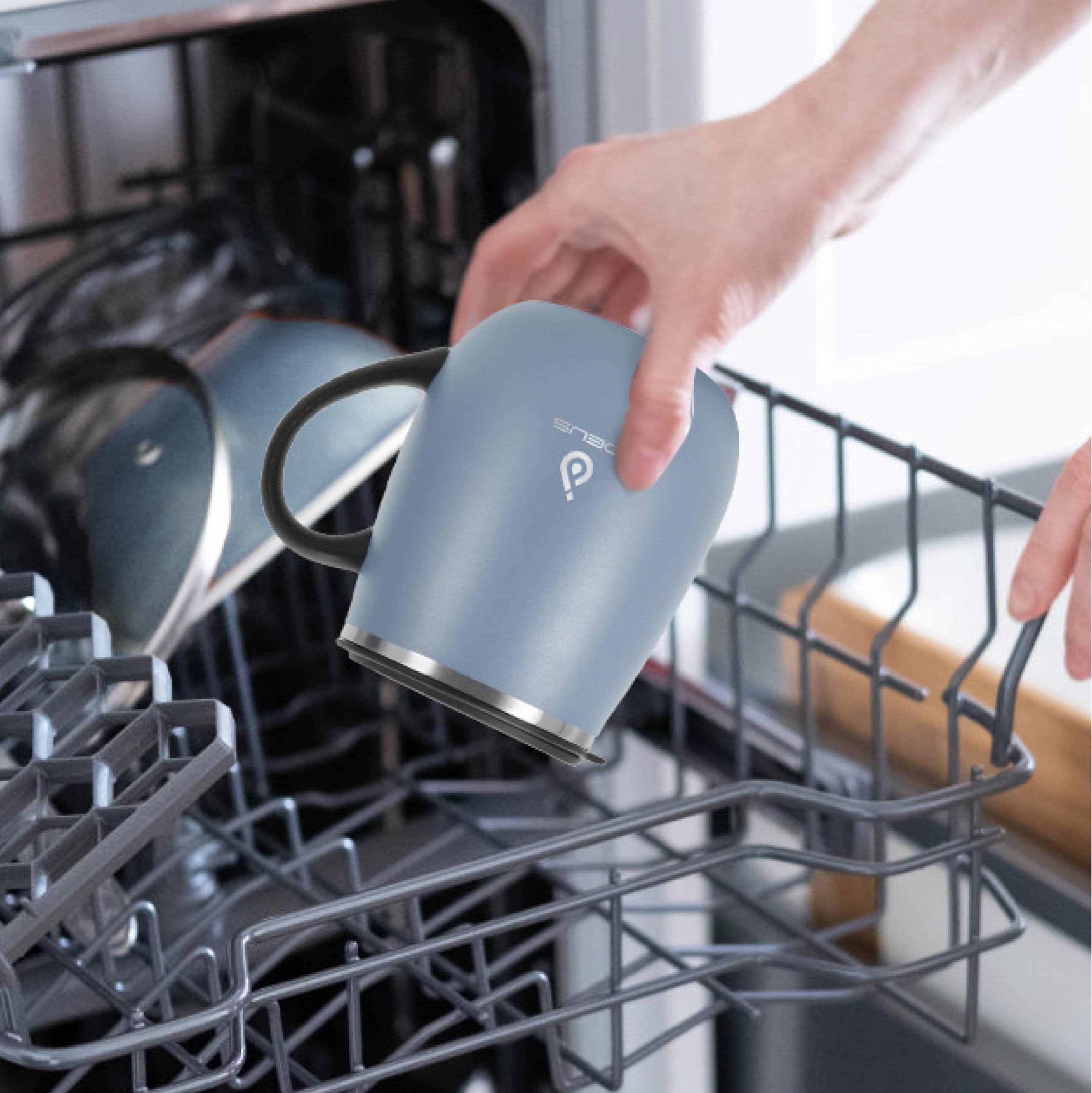 【PERFECT CAPACITY】- This travel mug has a 16oz capacity. Its wide mouth makes it perfect for infusing drinks with fruit or ice and for effortless cleaning. Ergonomic handle on the side for a comfortable grip, making it the great outdoor camping mug and the coffee mug in the office as well.