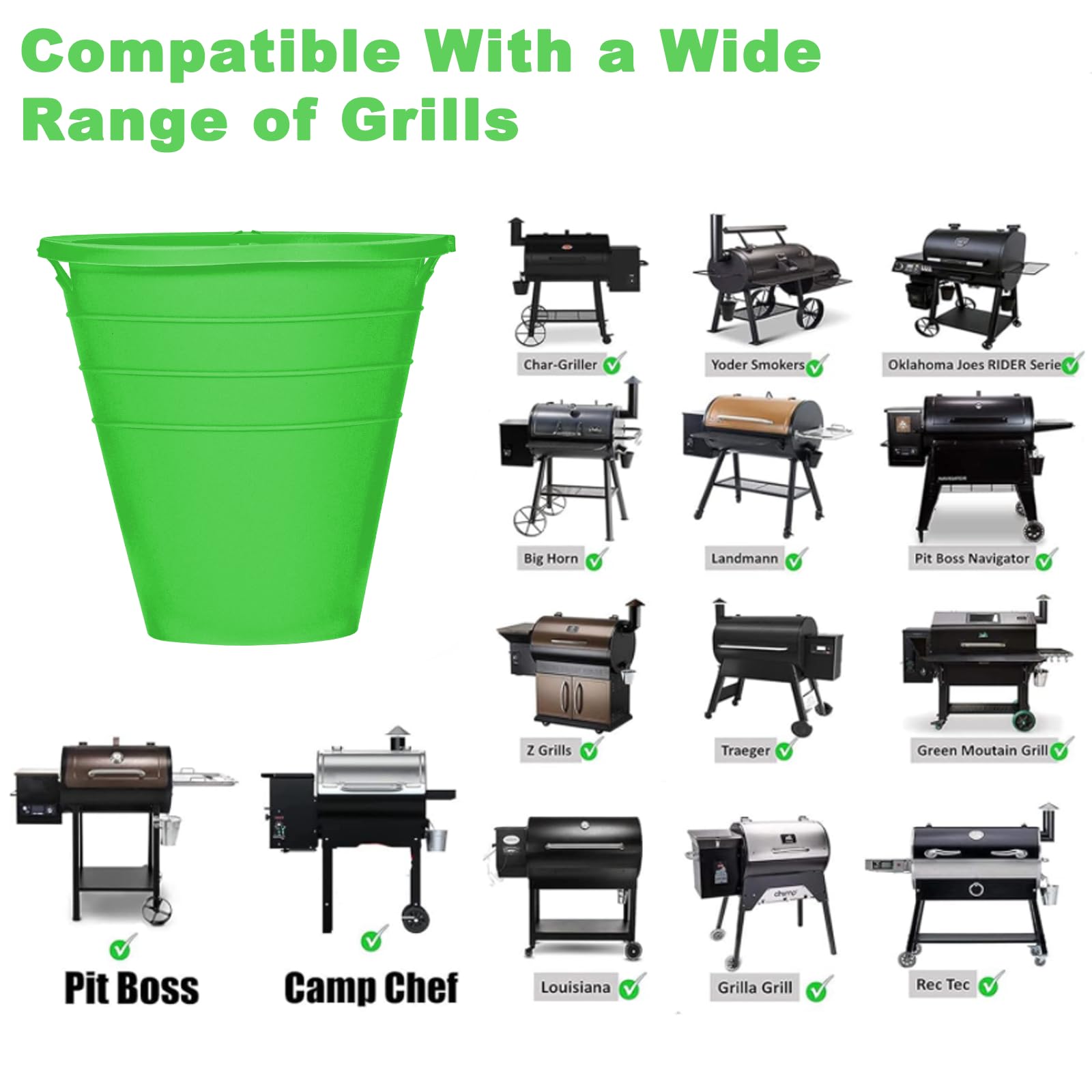【COMPATIBILITY】- This silicone Grease bucket liner / Drip pail / Drip tray liner works well with most offset grill Compatible with Traeger New Pro Series 575, 780, Ironwood 650, 885, 20 22 34 Series Oklahoma Joe's, Z Grill, GMG Pit Boss, grills.