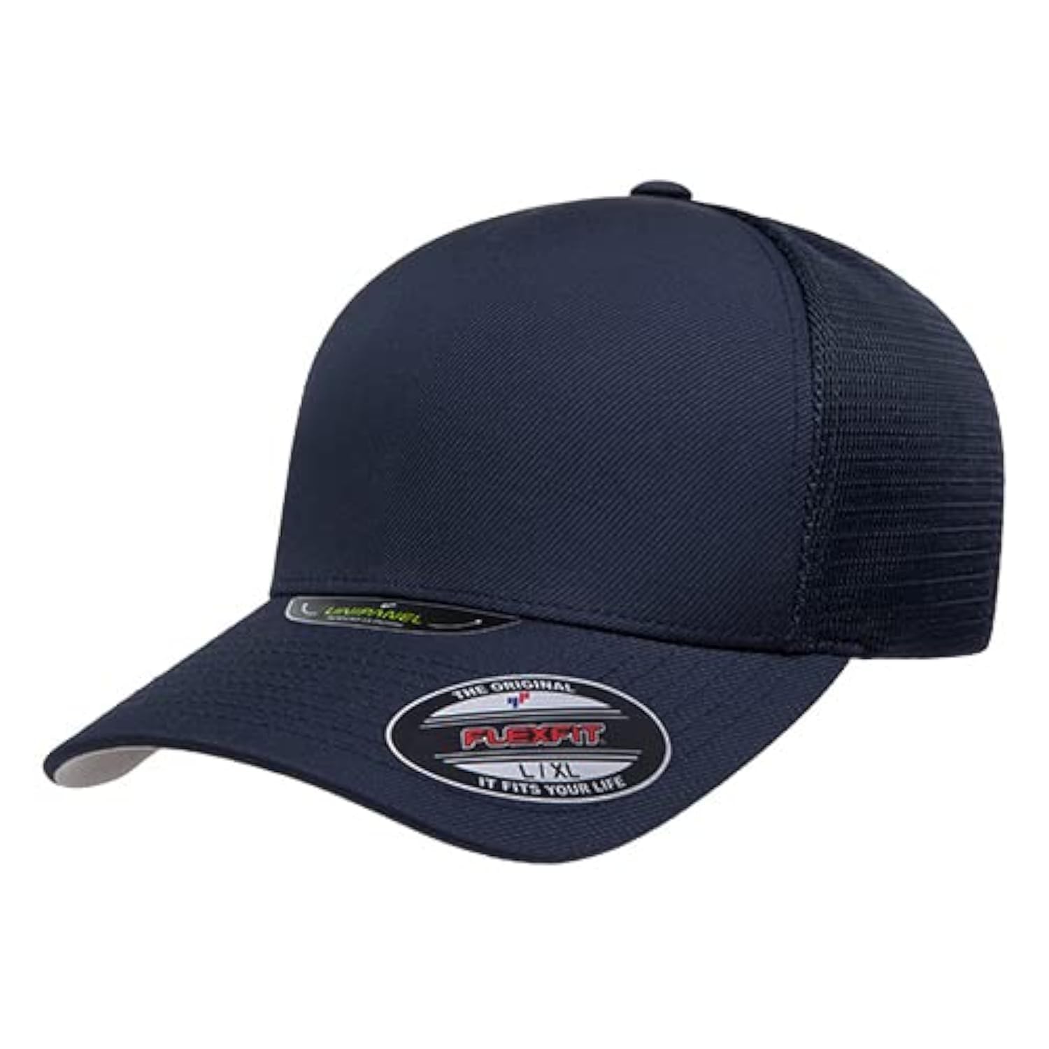 Great-Looking Baseball Hats for Men: These blank 6-panel FLEXFIT hats feature a mid-profile in a quick-drying, stain-resistant fabric that keeps you dry in hot weather with a rounded athletic shape and 3-layer stretch sweat band to fit all sizes