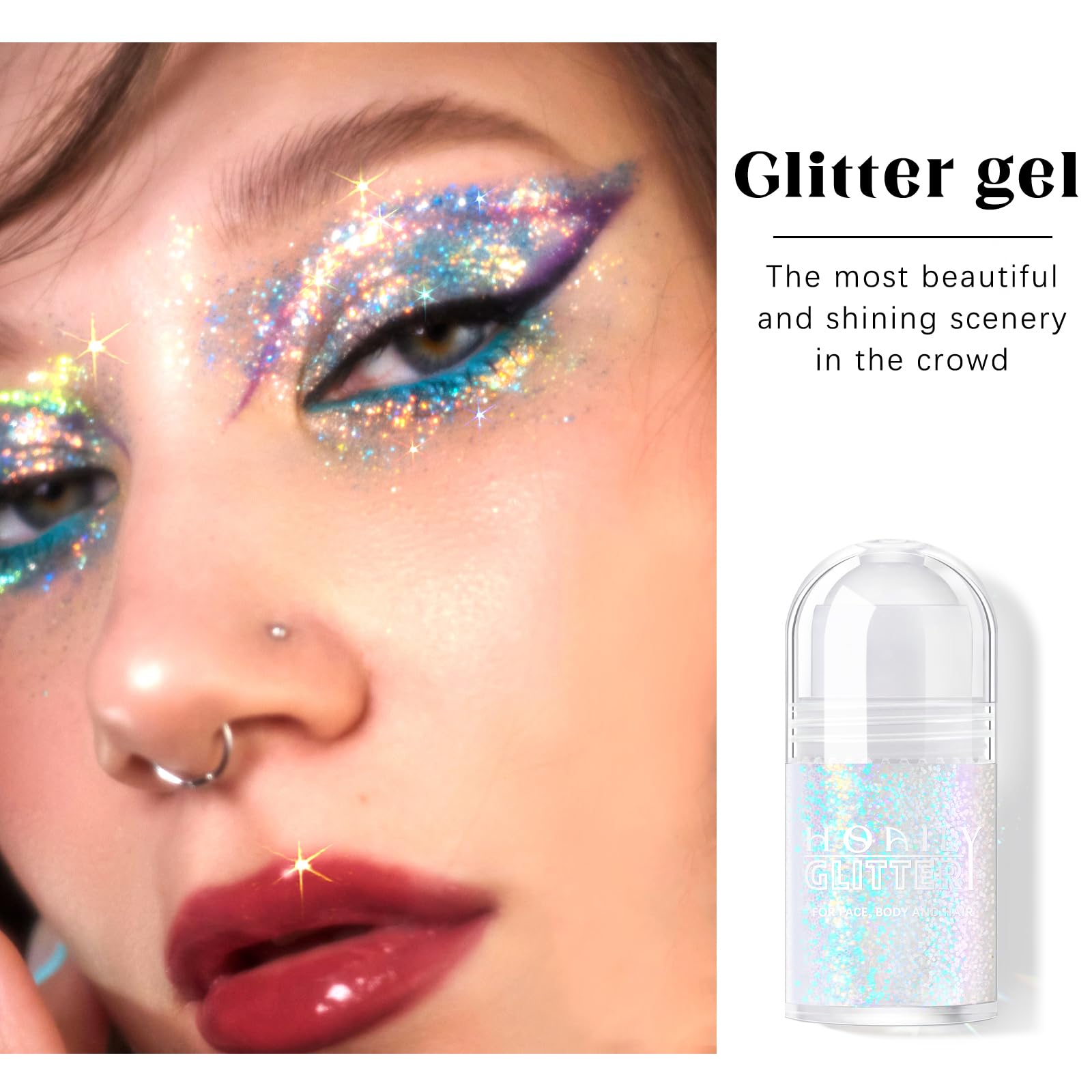 Wide Applications: This cosmetic chunky glitter gel is perfect for your body, face, eyeshadow, lips, cheeks, hair, nail art, and more, and perfect for rave hair accessories. It has a strong glowing effect in day and night, especially suitable for parties, weddings, stages and music festival, making you the glamorous focus of a passionate revelry