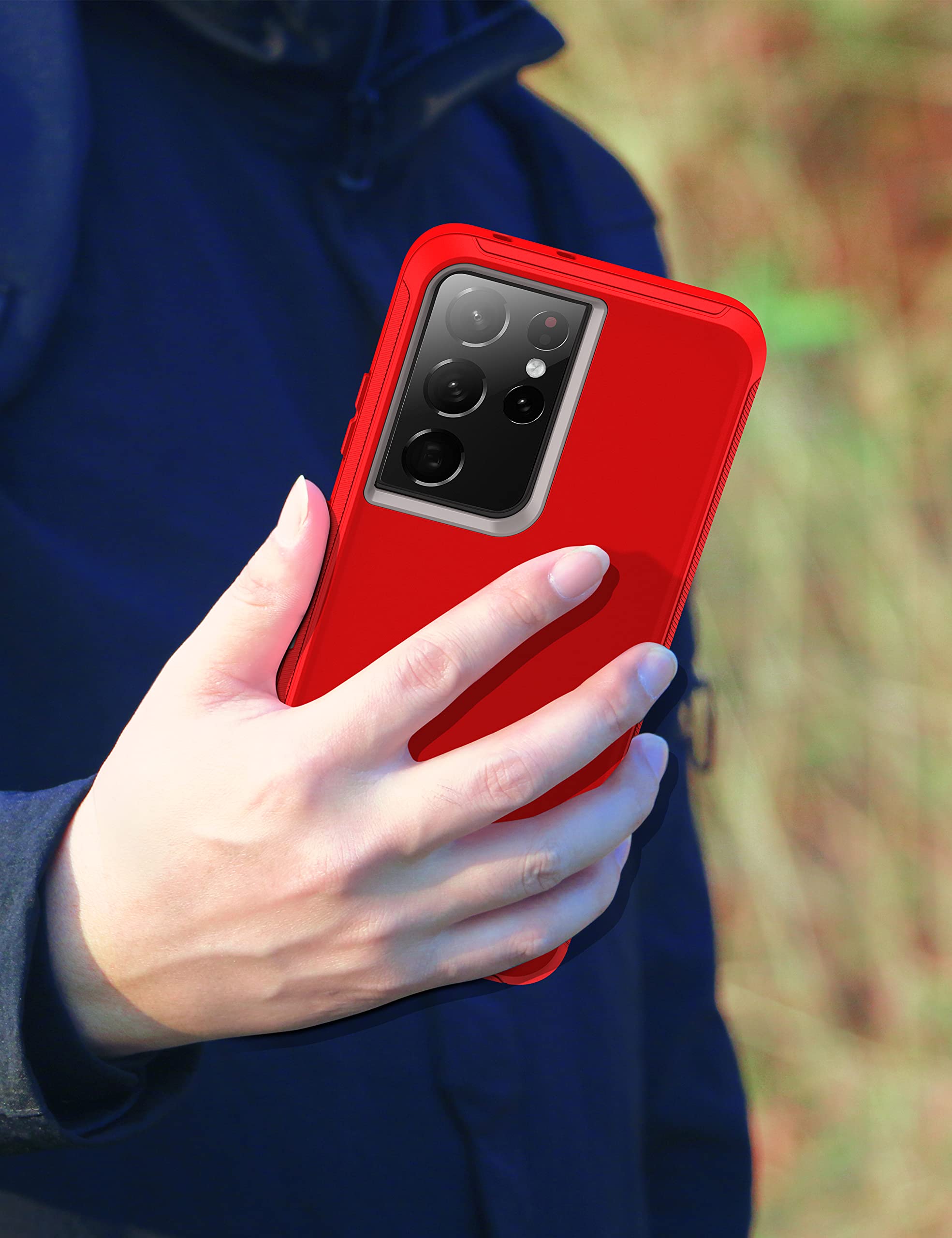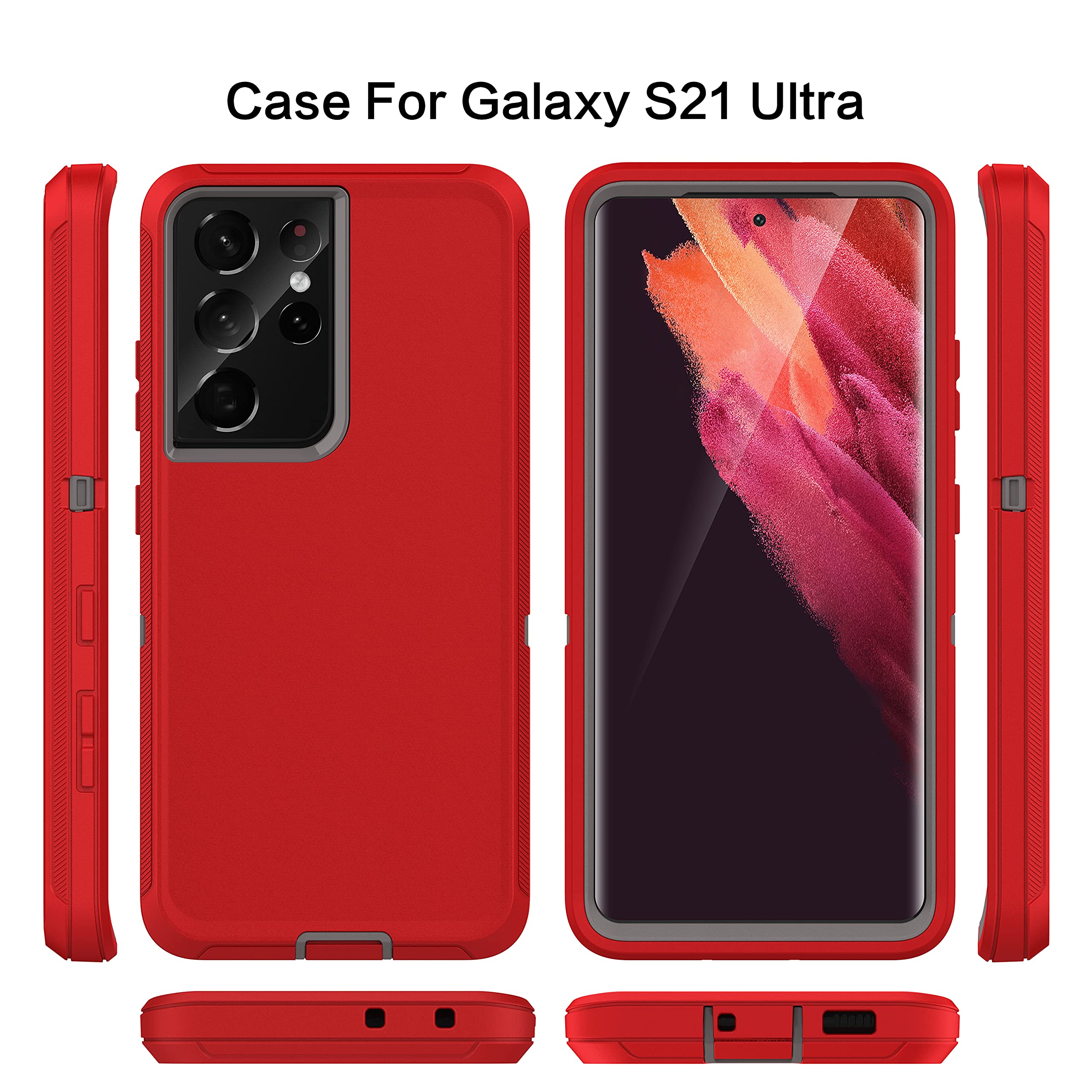 Durability: Samsung S21 Ultra case features a triple-layer defense with an inner shell and rugged outer cover to protect against drops, scratches, bumps, and shocks. The unique detachable design offers 3-in-1 protection, including shock resistance, dust protection, and scratch prevention. Provides reliable protection from impacts, withstanding drops from up to 14 feet on flat ground
