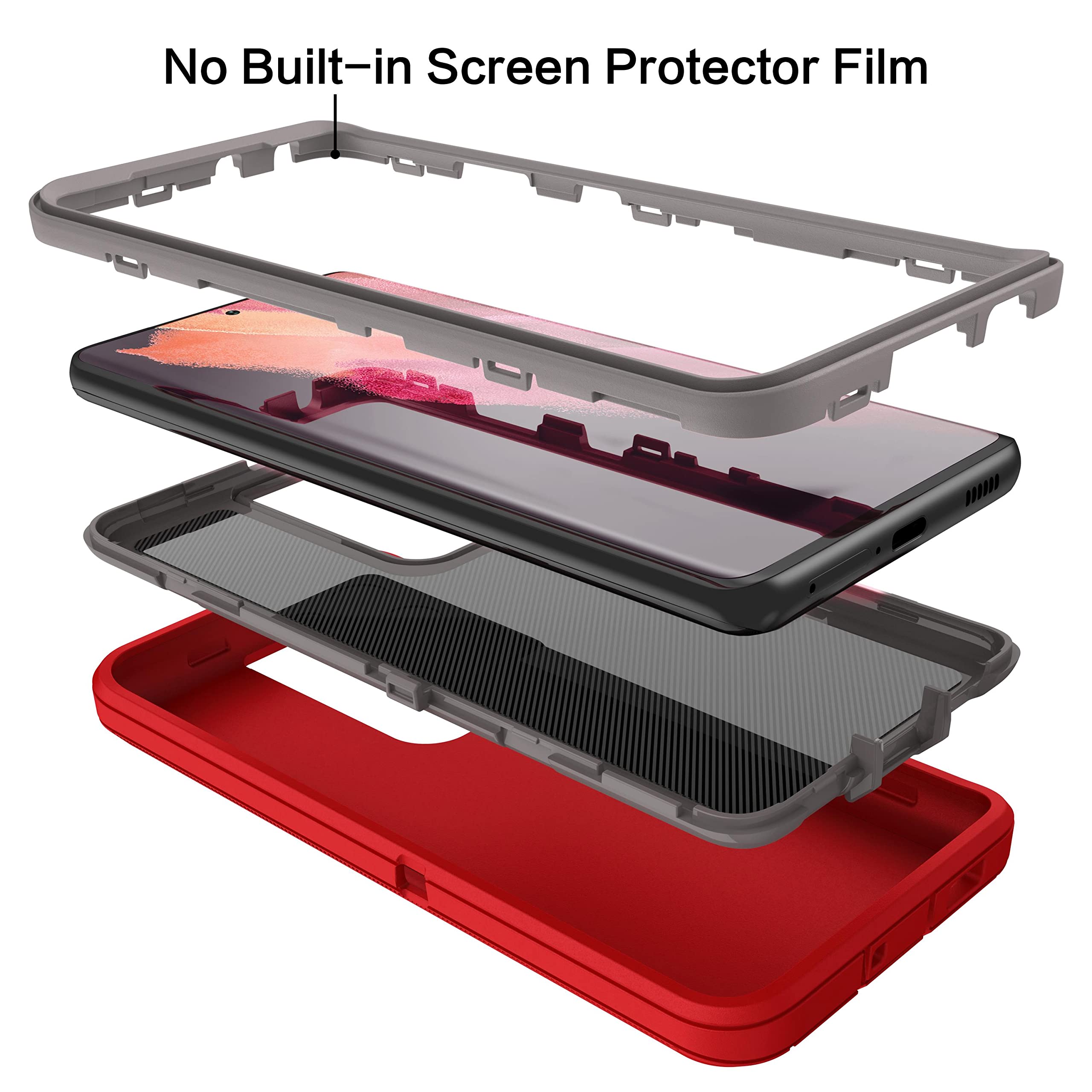 Protection: Galaxy S21 Ultra 5G case features port covers that keep out dust and debris. The synthetic rubber slipcover, combined with a hard plastic inner and soft rubber silicone outer, absorbs shocks, bumps, and drops. The raised beveled edge protects your touchscreen, and the accurately designed port plug ensures easy access while blocking dust and debris