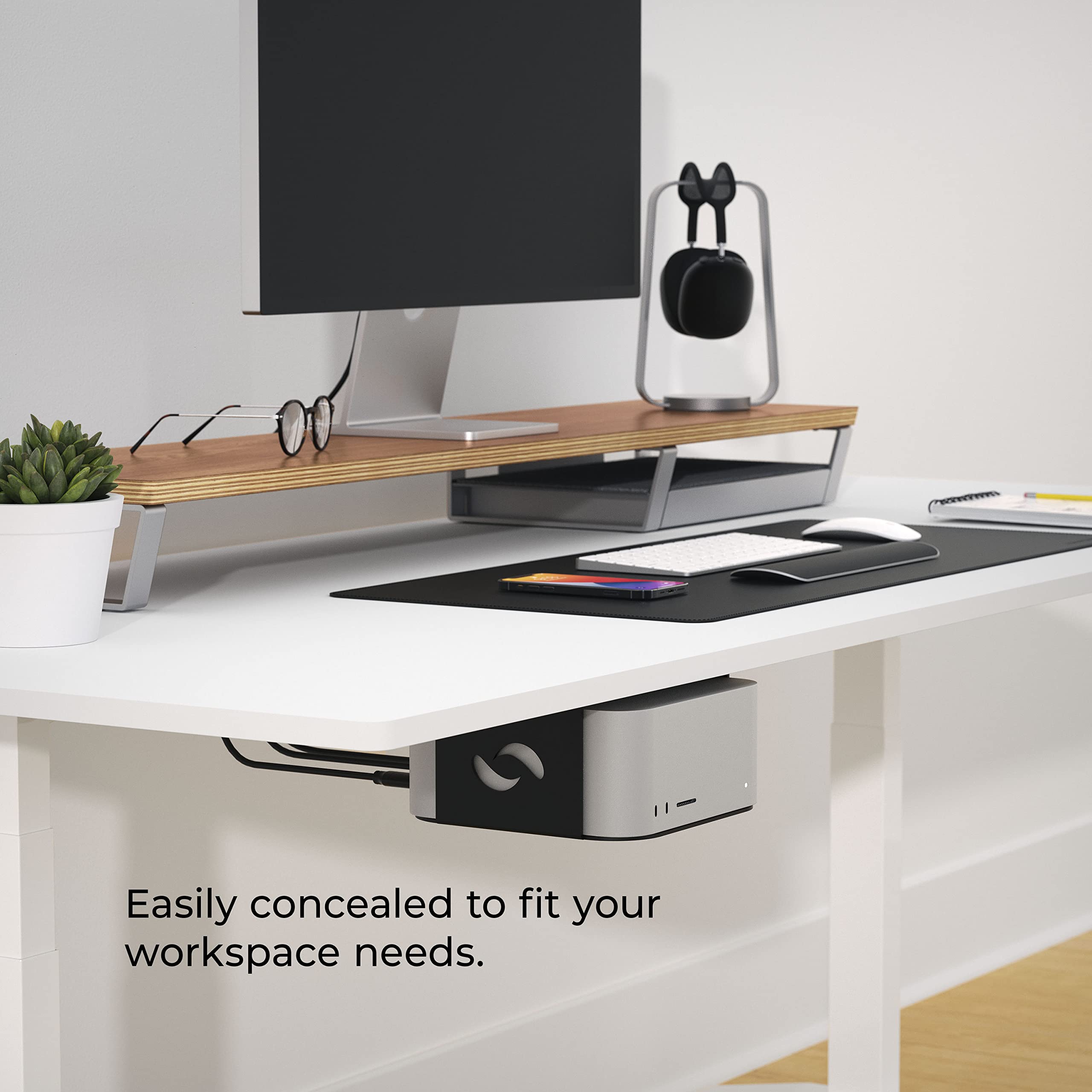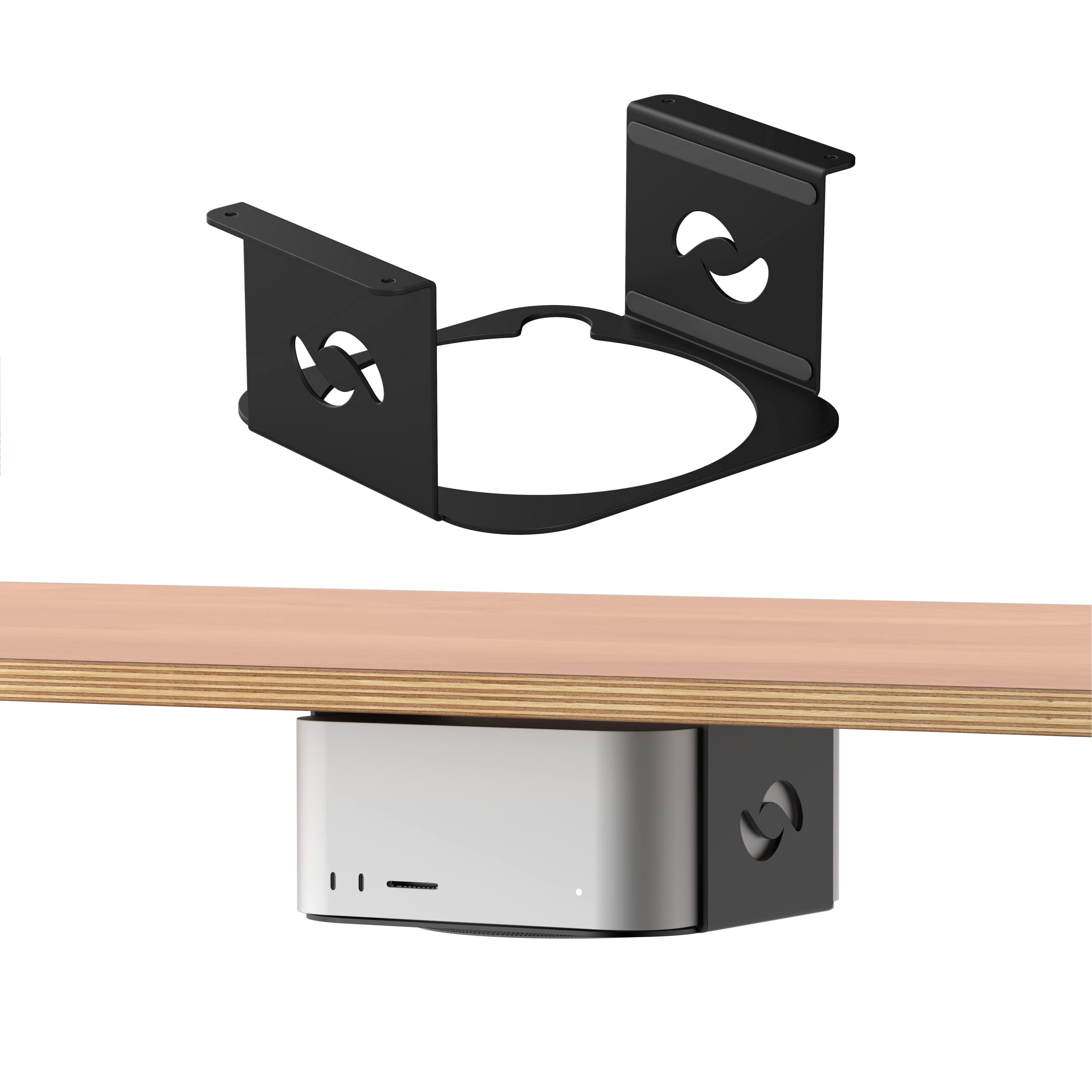 Mount your Apple Mac Studio and save desk space with an under desk mount designed for the Apple Mac Studio. Access critical ports and orient the Mac Studio case to fit your workspace needs. Open on two sides for easy port access and airflow.