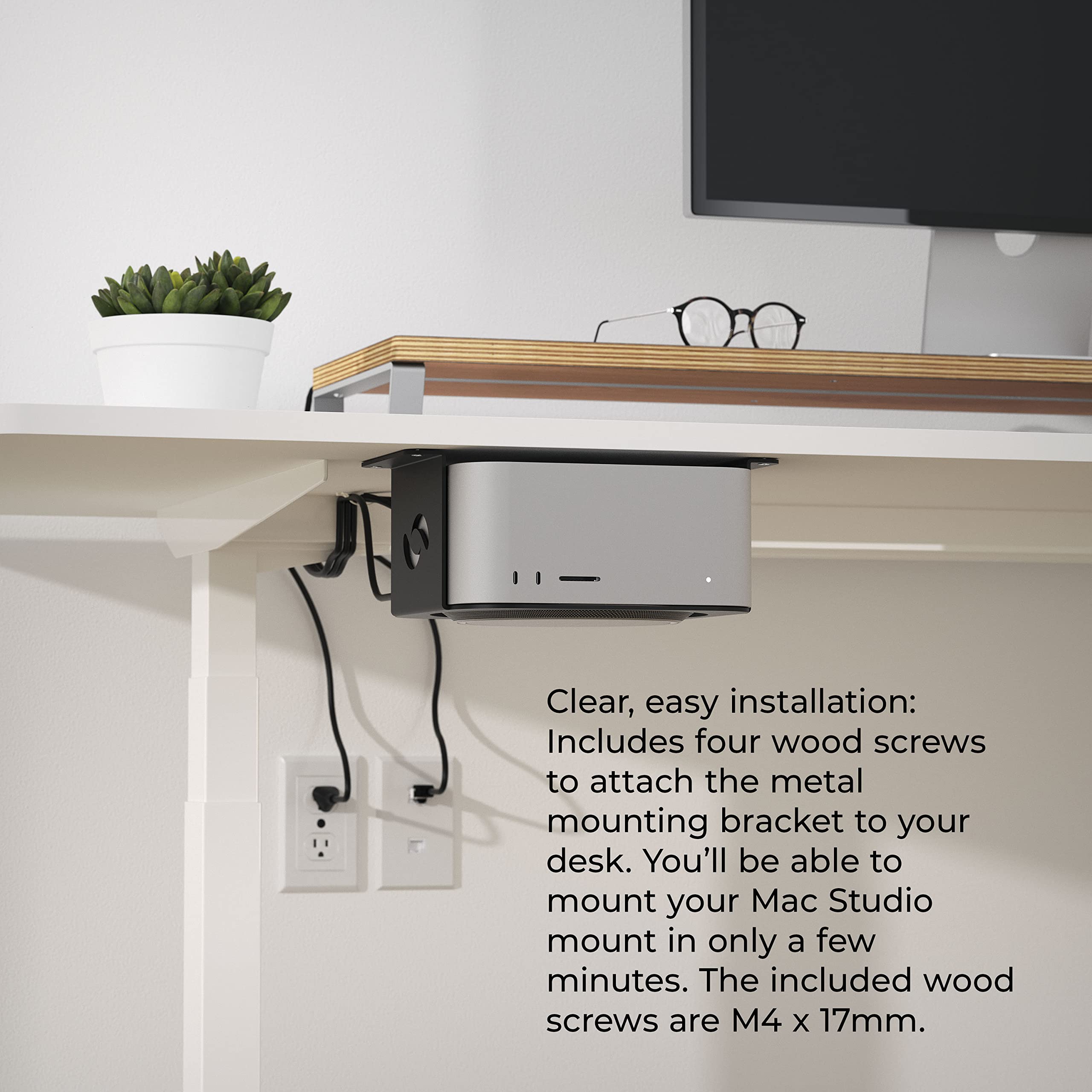 Clear, easy installation: Includes four wood screws to attach the metal mounting bracket to your desk. You’ll be able to complete your Mac Studio mount in only a few minutes. Compatible with both Mac Studio M1 Max and Mac Studio M1 Ultra.