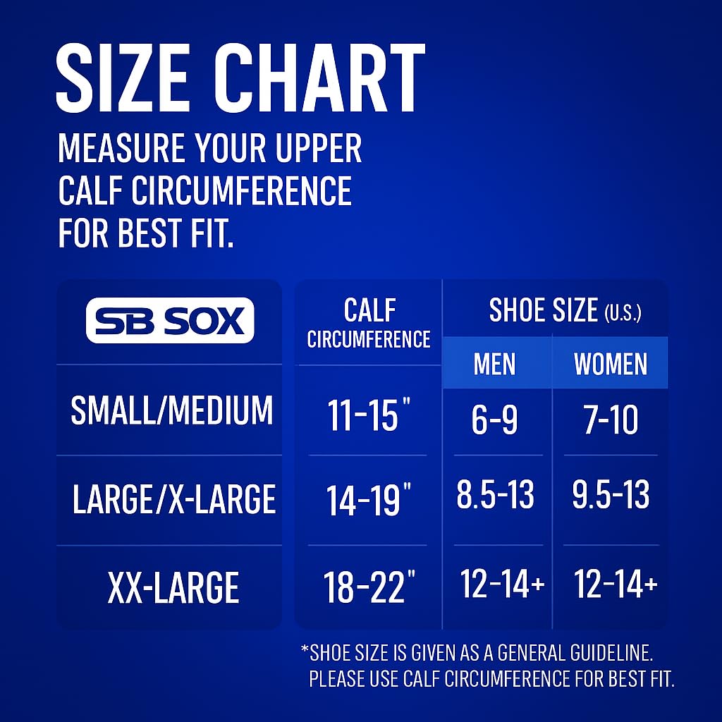 Perfect Fit: Refer to our size chart (4th product image) to determine the best size for you. We offer three sizes so that our socks can perfectly fit your feet/calves. We do recommend measuring your calf circumference.