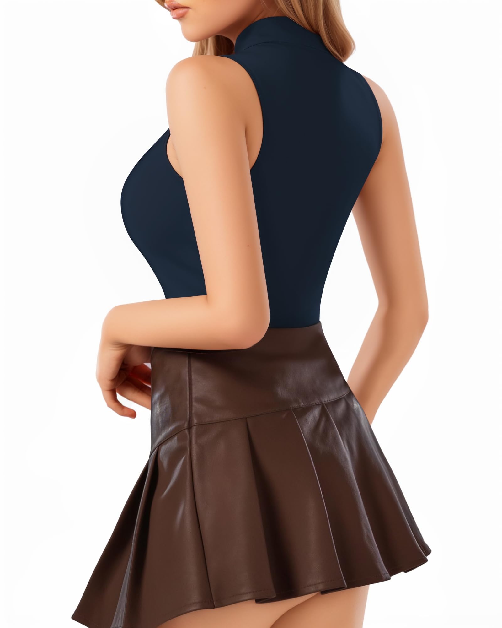 Basic Slim turtleneck: Tank top Mock Turtle Neck Sleeveless Bodysuit is a great way to flatter your neck, keep cool,and One of the indispensable pieces of the fashion classic