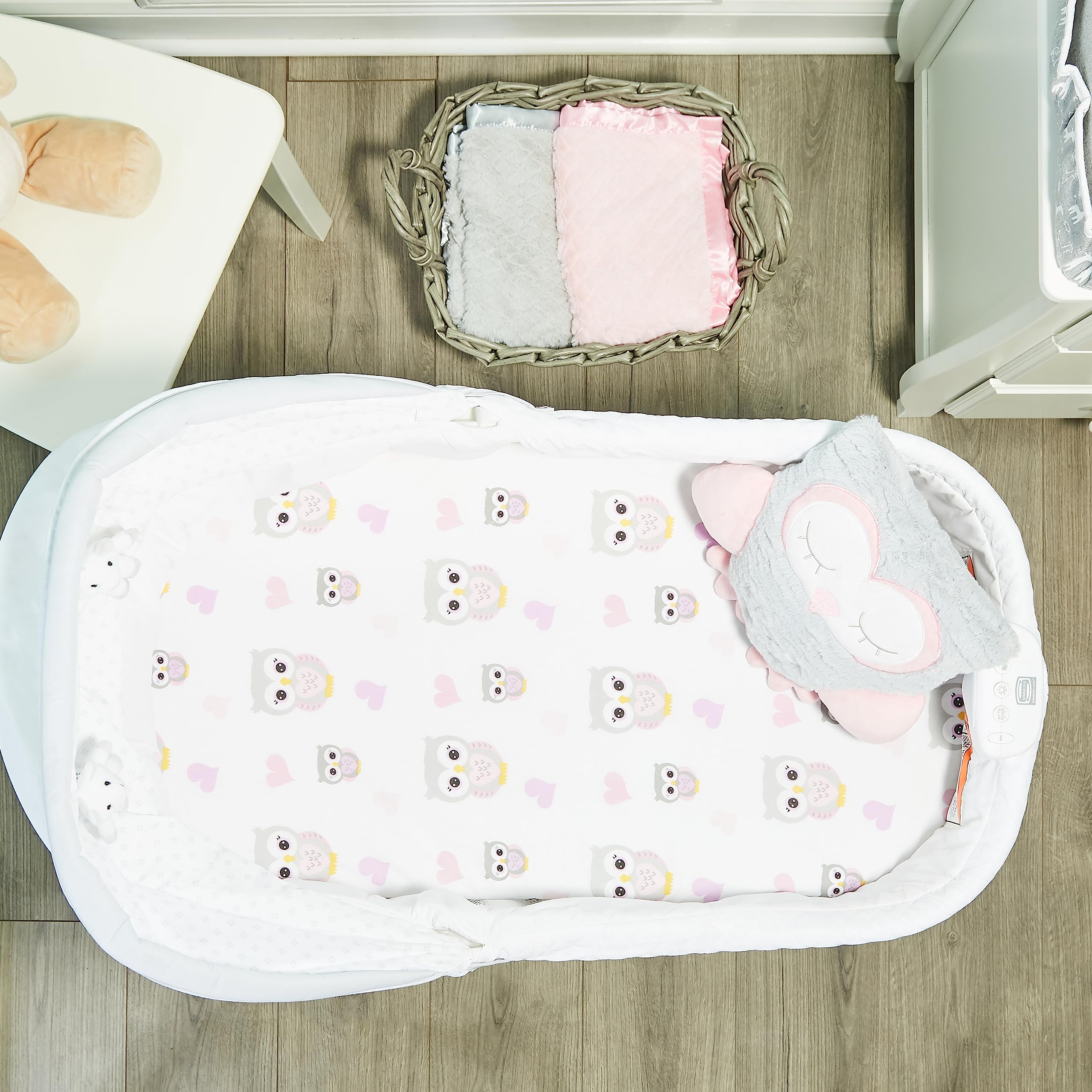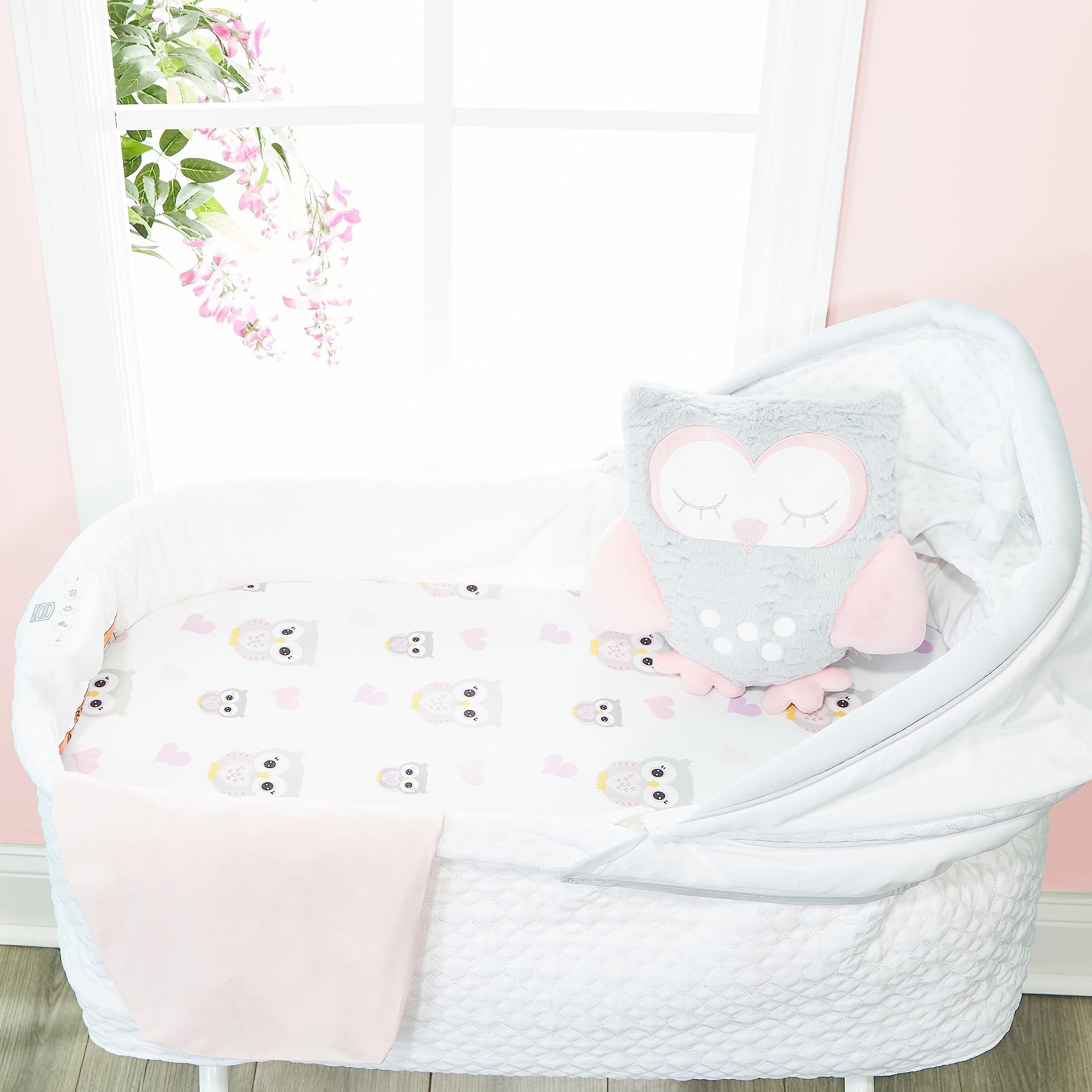 COLORS AND DESIGNS BABIES LOVE: In pink, gray and yellow colors, the owls and hearts design of these baby sheets for a baby girl are colorful and easily blend with girl nursery themes!