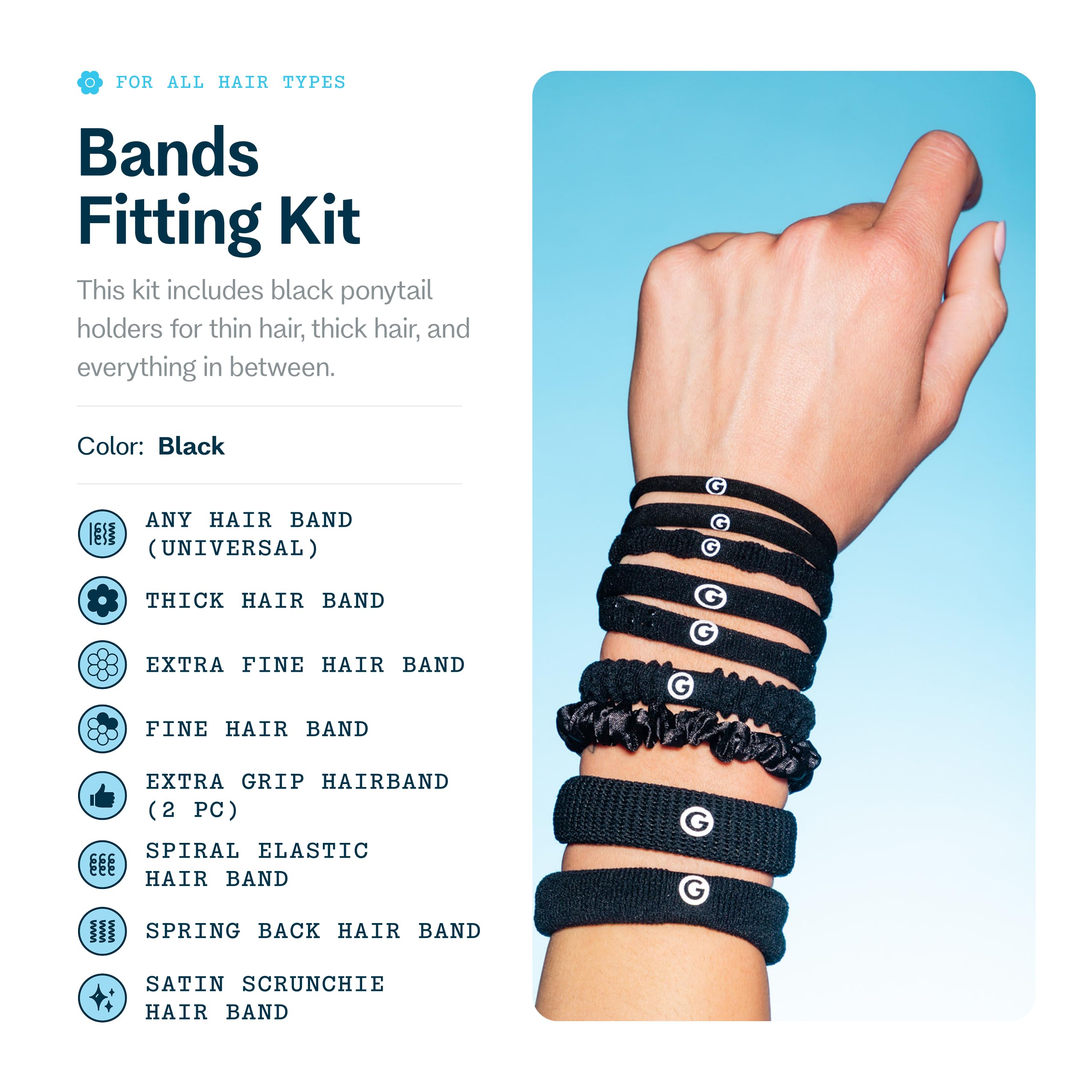 Hair Ties for All: Whether you have fine or curly hair, find the perfect fit with our Bands Fitting Kit; 5 count black hair ties