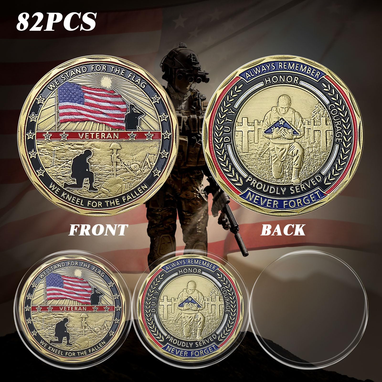 【Large Quantity for Your Use】Our military gift set comes with 82 military appreciation coins. They're more than just coins; they're a precious gift, a way to express our gratitude and respect for the brave military men and women around us. By presenting these challenge coins to them, we can proudly convey our appreciation for their selfless service and our respect for their courageous actions
