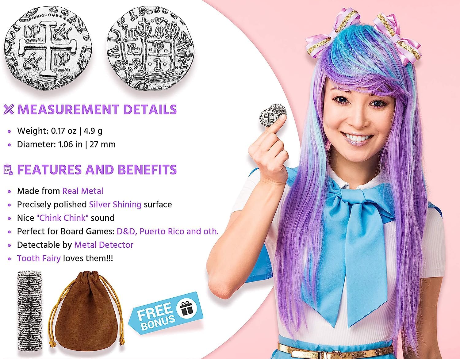PERFECT FOR PARTIES: Take your costume or cosplay to the next level with Leib Games silver pirate doubloons! Designed as the perfect pirate accessories for kids, men, and women, these high-quality novelty coins add an authentic touch to any outfit. Say goodbye to plastic silver coins—choose our premium coins for a more realistic and stylish look!