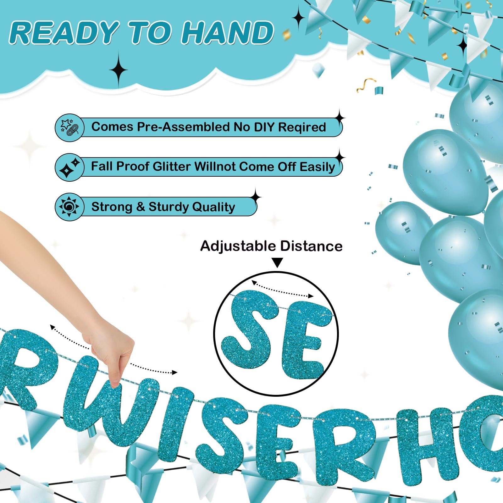Size Information: you will receive a set of birthday banners for women, which measures about 7.22 ft/ 2.2 m in length, and the letter measures about 6.3 inches/ 16 cm in height, you can check the size information before purchase