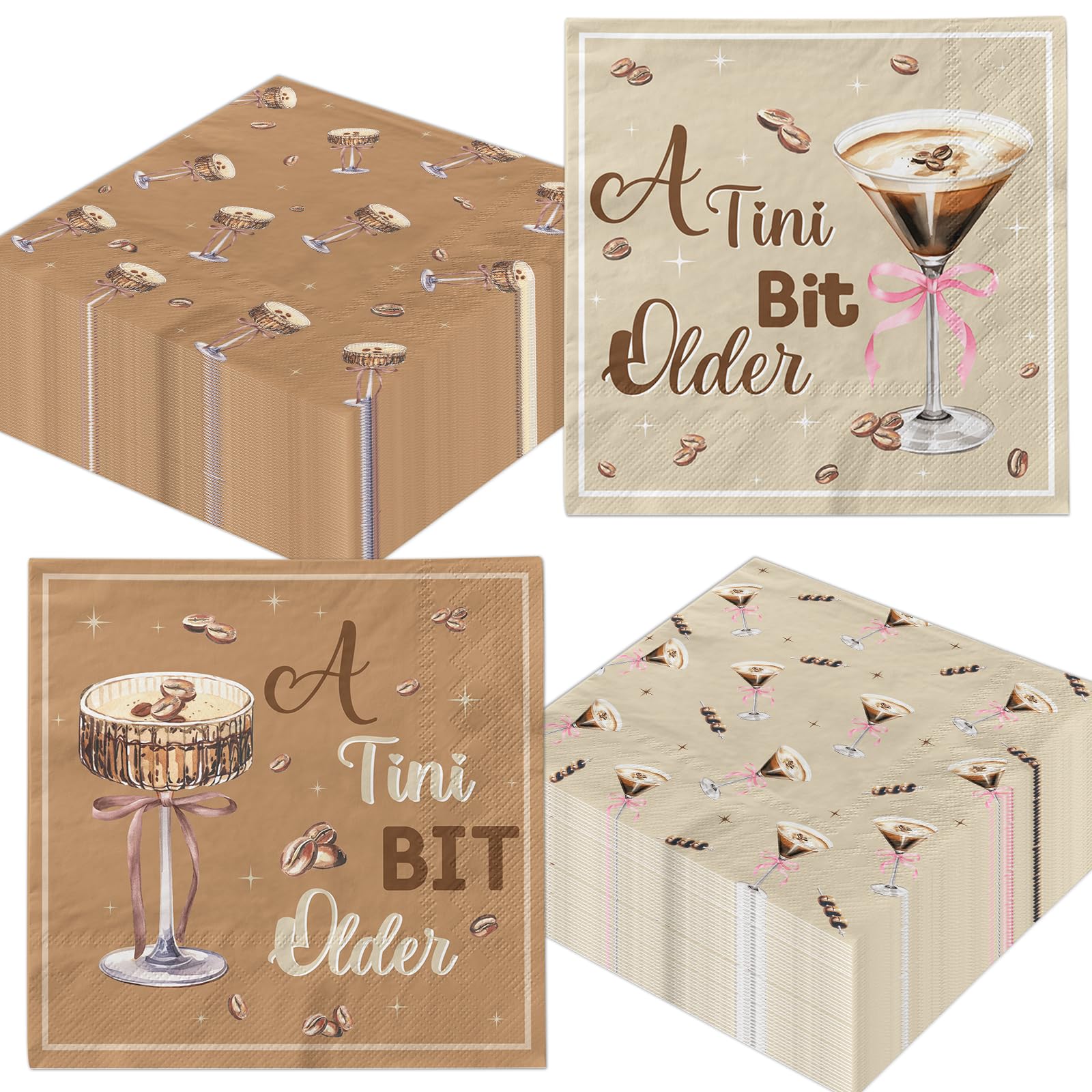 Exquisite design: These espresso martini bachelorette party plates showcase a warm brown color palette, accented with delightful margarita, coffee bean, and bow illustrations. The text "A Tini BIT Older" stands out, adding a stylish and celebratory vibe. The elegant design is ideal for creating a cozy bachelorette, baby shower or bridal shower, birthday party atmosphere.