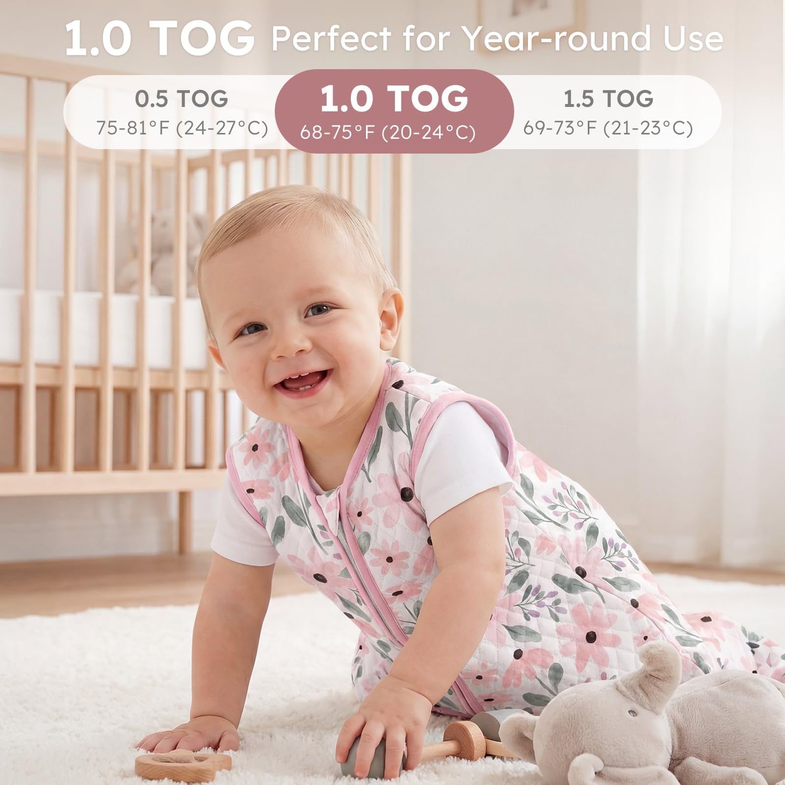4-Season Use: 1.0 Tog sleep sack is perfect for all-year-around, keeps baby cozy and comfortable in A/C room or restaurant, when travelling or napping. What's more, sleeveless design provides for greater flexibility and comfort, better regulates your baby's temperature and reduces the risk of over-heating.