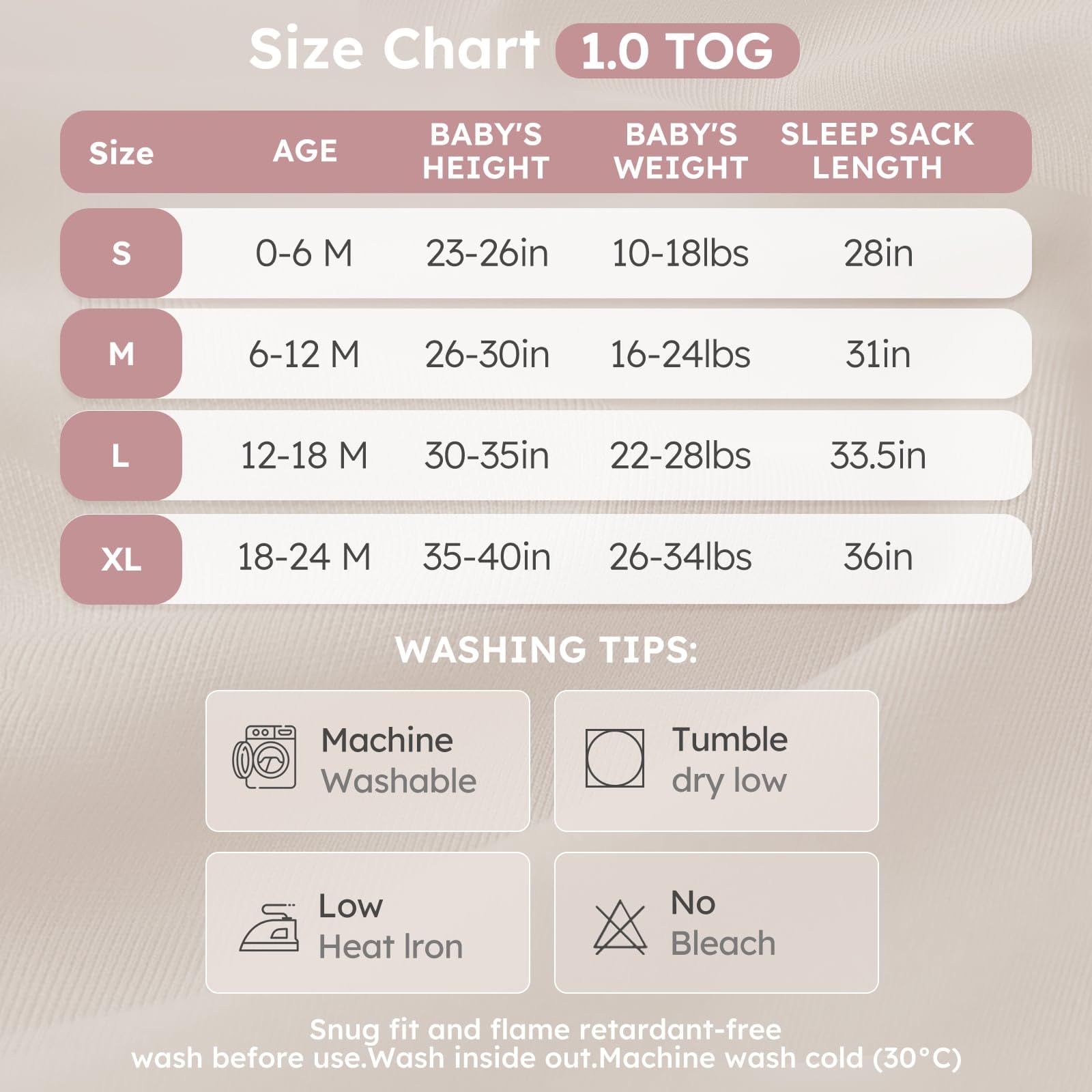 Available Size and Mahchine Washable: Available in 4 sizes for babies 0-24 months (S, M, L, XL). Machine washable for easy maintenance, these toddler sleep sacks retain their softness and durability wash after wash. Please measure your infant's height and weight, and refer to the size chart before choosing.