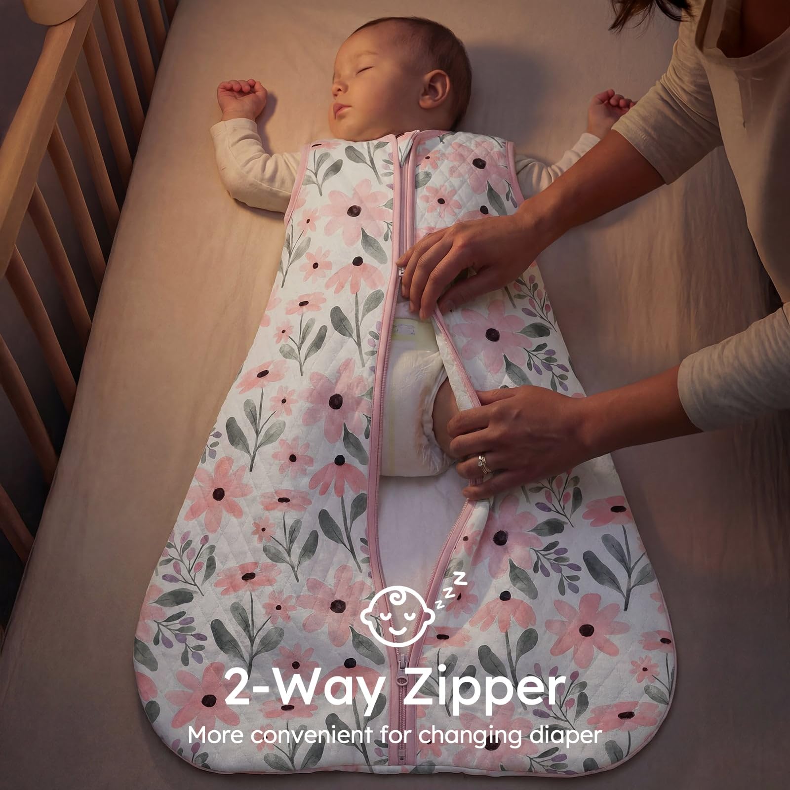 Easy 2-Way Zipper: Double zipper allows for easy dressing and convenient diaper changing with no hussle and bustle. With top-grade zippers and zipper flat design, newborn sleep sack frees from any potential scratches, glide along the tracks moothly without any snagging or jamming.