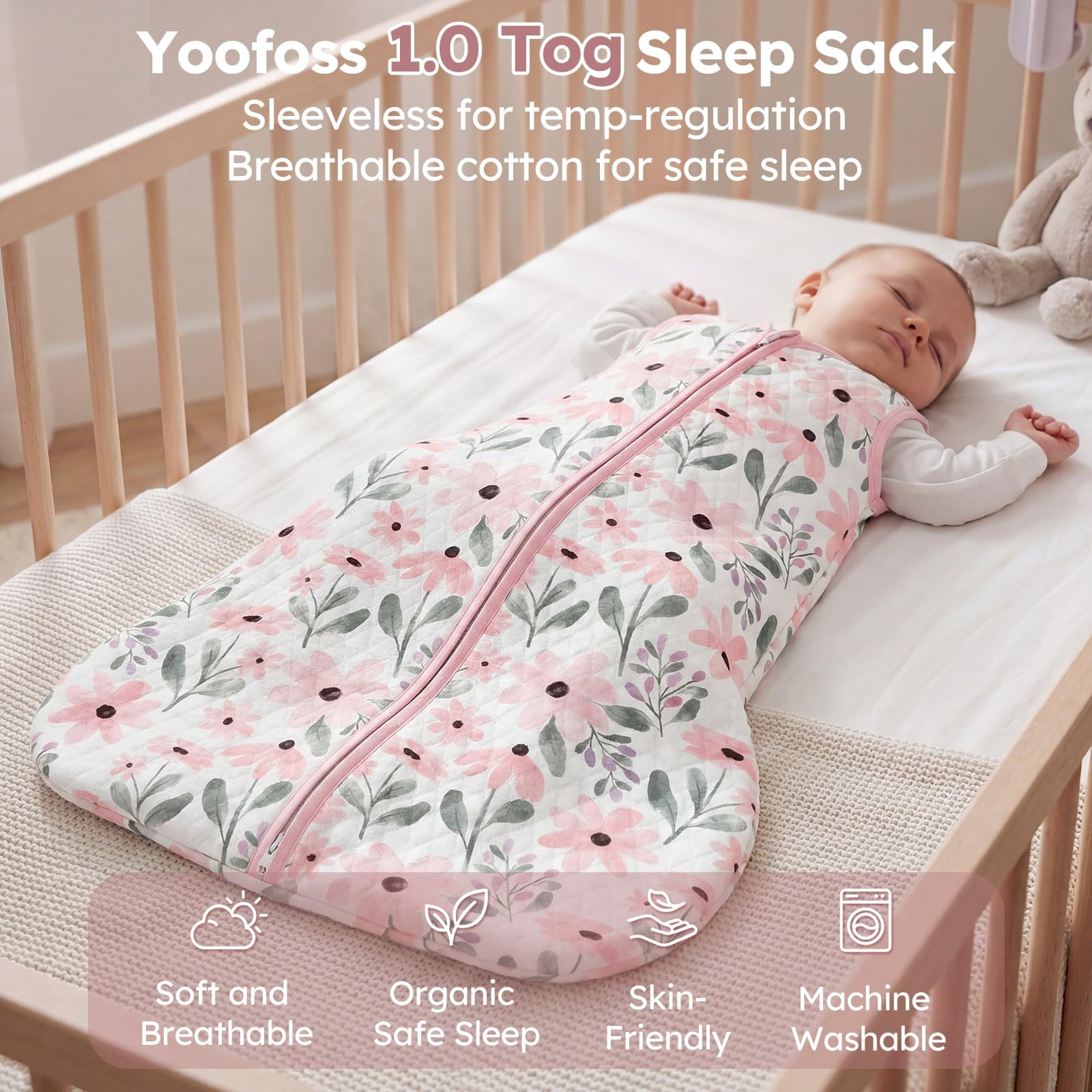 Safe and Comfort: Made of organic cotton fabric and fluffy polyester filling, our sleep sack ensures the utmost comfort and the protection of toddler's sensitive skin. Yoofoss baby sleep sack is Certified by the Global Organic Textile Standard (GOTS), we prioritize your baby’s comfort and safety.