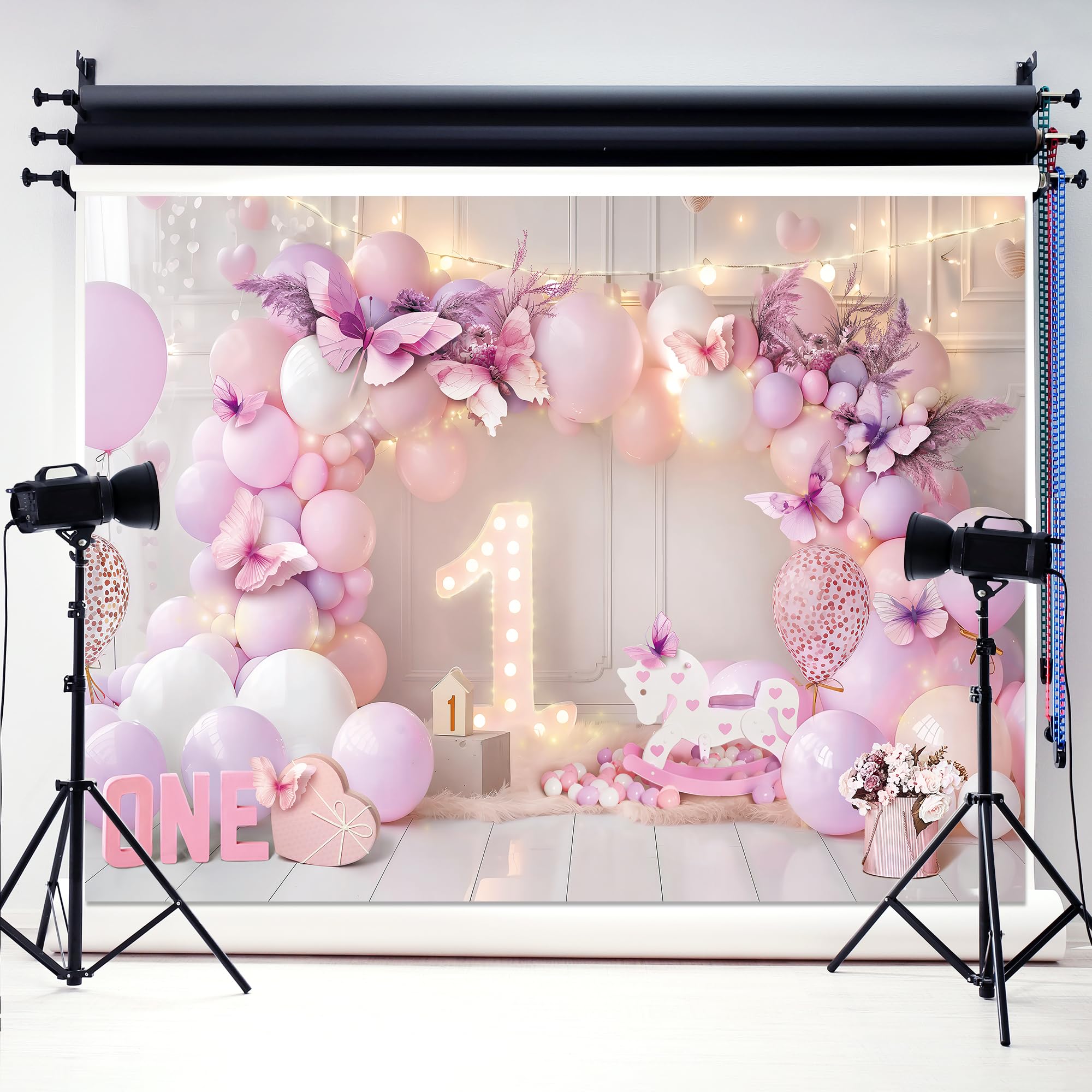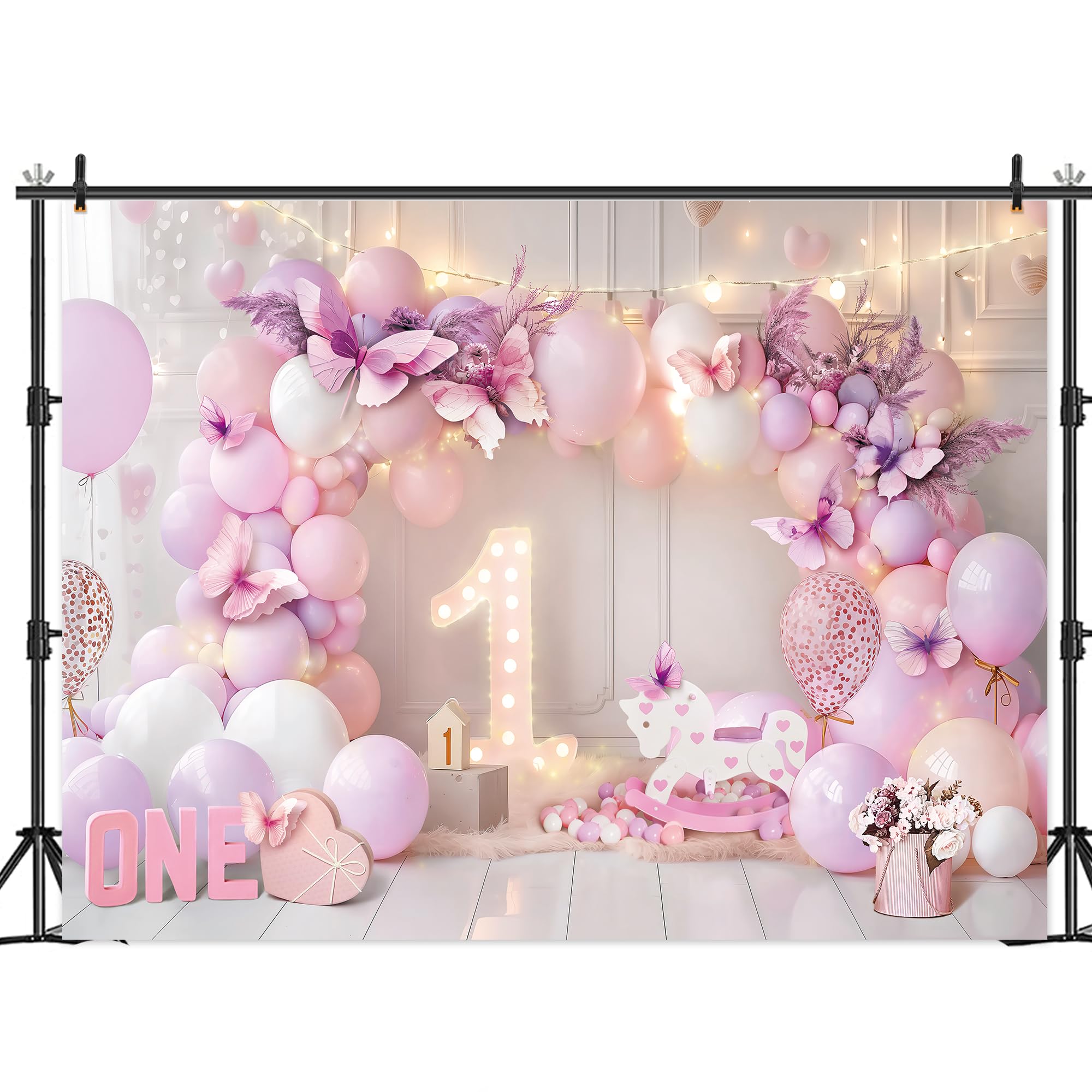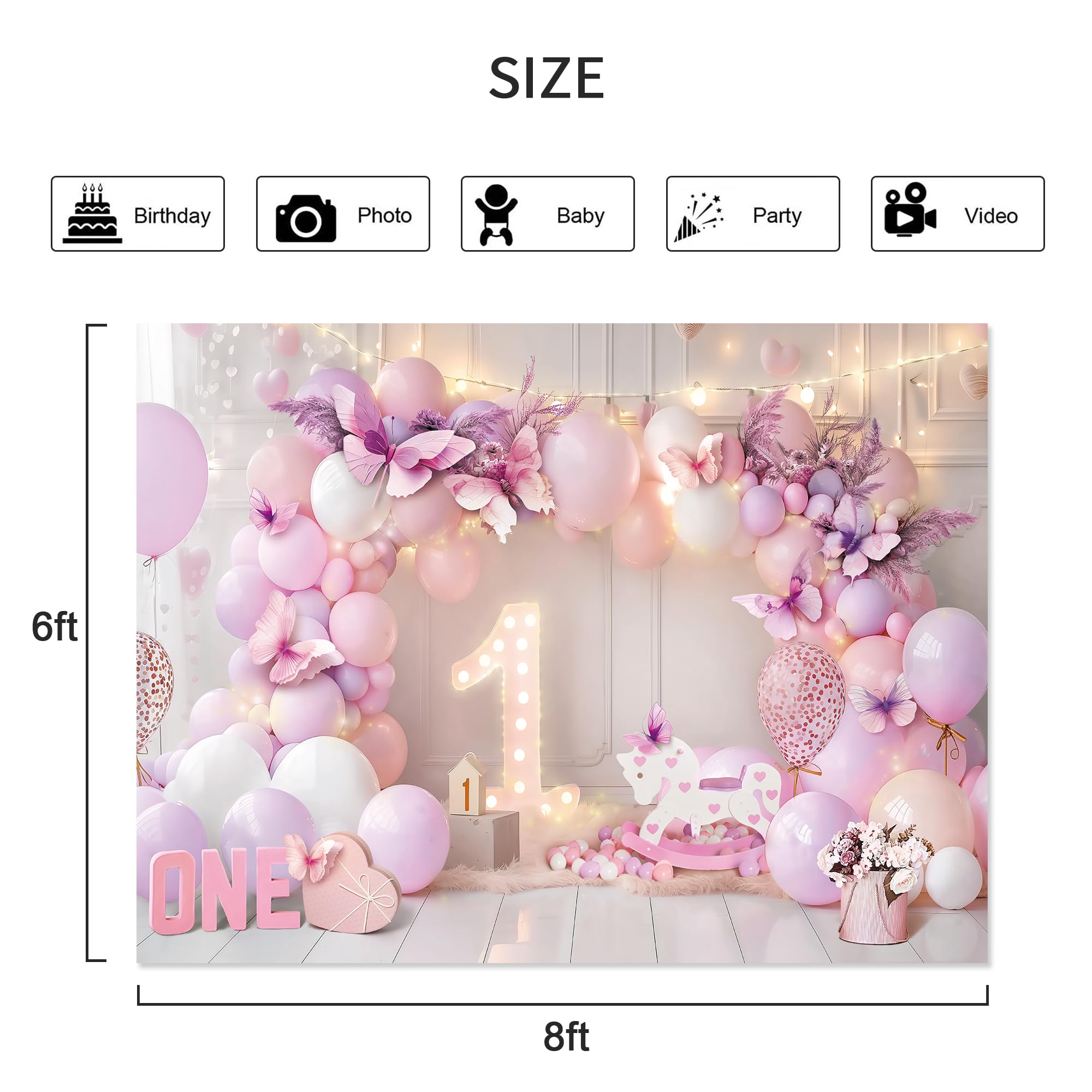 ▶UNIQUE DESIGN: Purple Pink Princess Balloons Lights Butterfly First Bday pattern,modern.