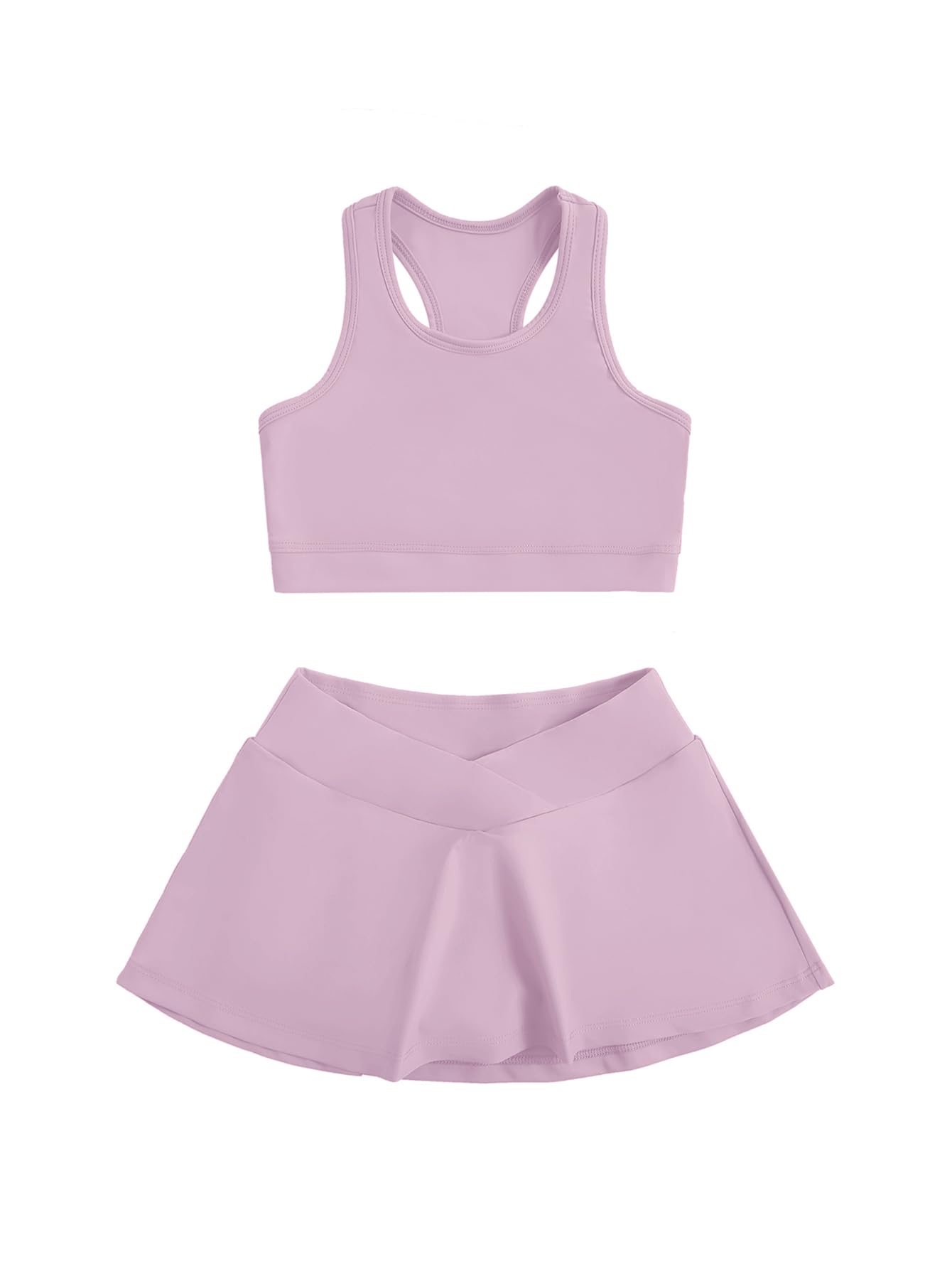 Features: Round neck, sleeveless, crop tank tops and tennis skirts skort set, fashionable