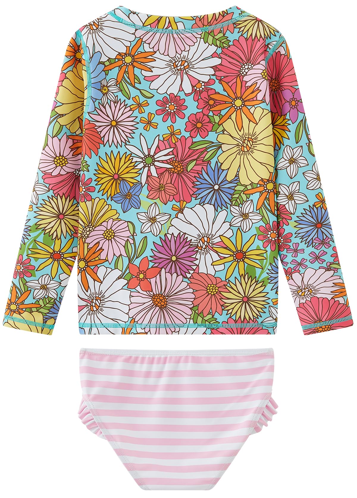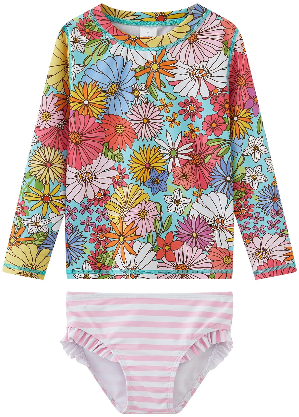 Cute & Stylish girls swimsuits: The bright color block girls two piece bathing suit design and floral printing amp up the happy summer breath. Stunning tropical floral patterns to show your girl a most adorable in the crowd, attractive and adorable