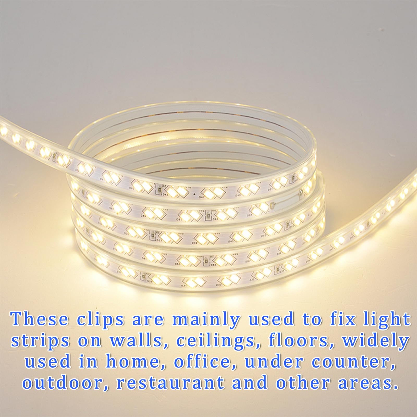 Wide Application: These LED light strip clips are suitable for designs such as personalized signage advertising, night parties, wedding decorations, home decoration embellishments, etc. You can fix the waterproof LED strip light clips on the wall or ceiling floor, not limited to neon lights, as long as the size is suitable, other USB cables, charging cables and other various cables can be used to fix.