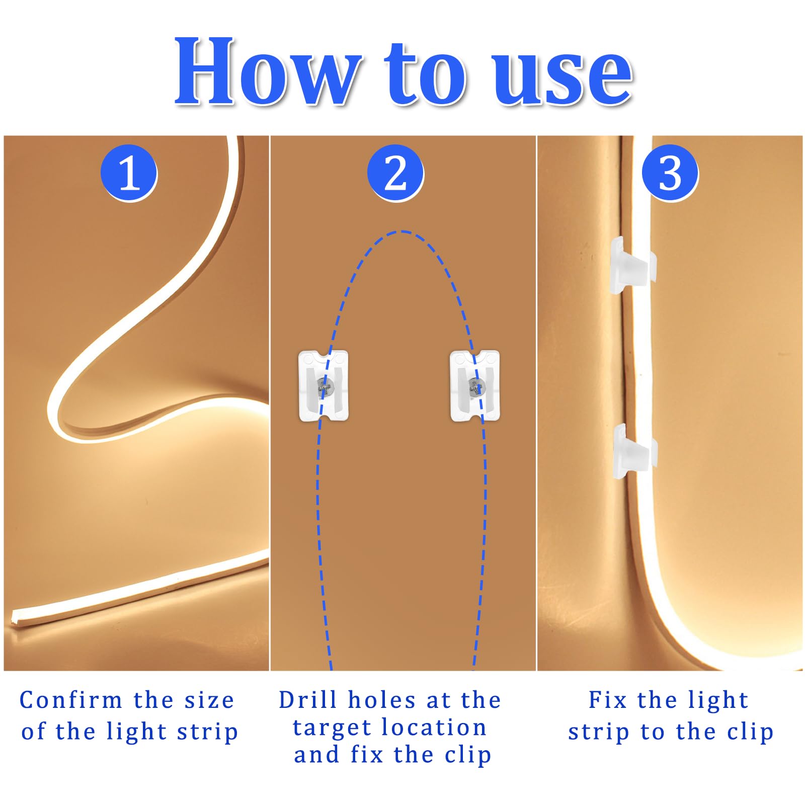 Easy to Use: The transparent fixing clips are ultra-thin and beautiful in appearance. You can install it anywhere you can fix screws, it can be easily fixed without effort, and it is recommended to use 3-6 for 1 meter light strip. Be careful when using it at the same time to avoid hurting your fingers and neon light strips.