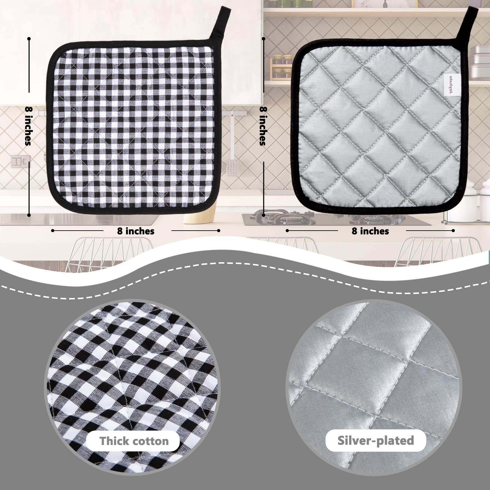 PROTECT YOU FROM HEAT - The construction of these pot holders for kitchen helps to protect your hands and arms from the heat of the oven. Do not use pot holders in a hot oven or over an open flame.