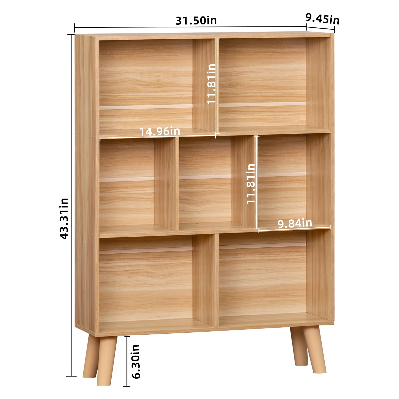[Suitable Size & Great Display] The simple upright and open design of the cubby book shelves can help you to save much more space in your house. This natural bookshelf can be used as a storage shelf organizer and display rack. Fill this creative display cabinet with your favorites! Choose a best display organizer for your books, CDs, magazines, and collections! Product size:31.5"L x 9.45" W x 43.31" H