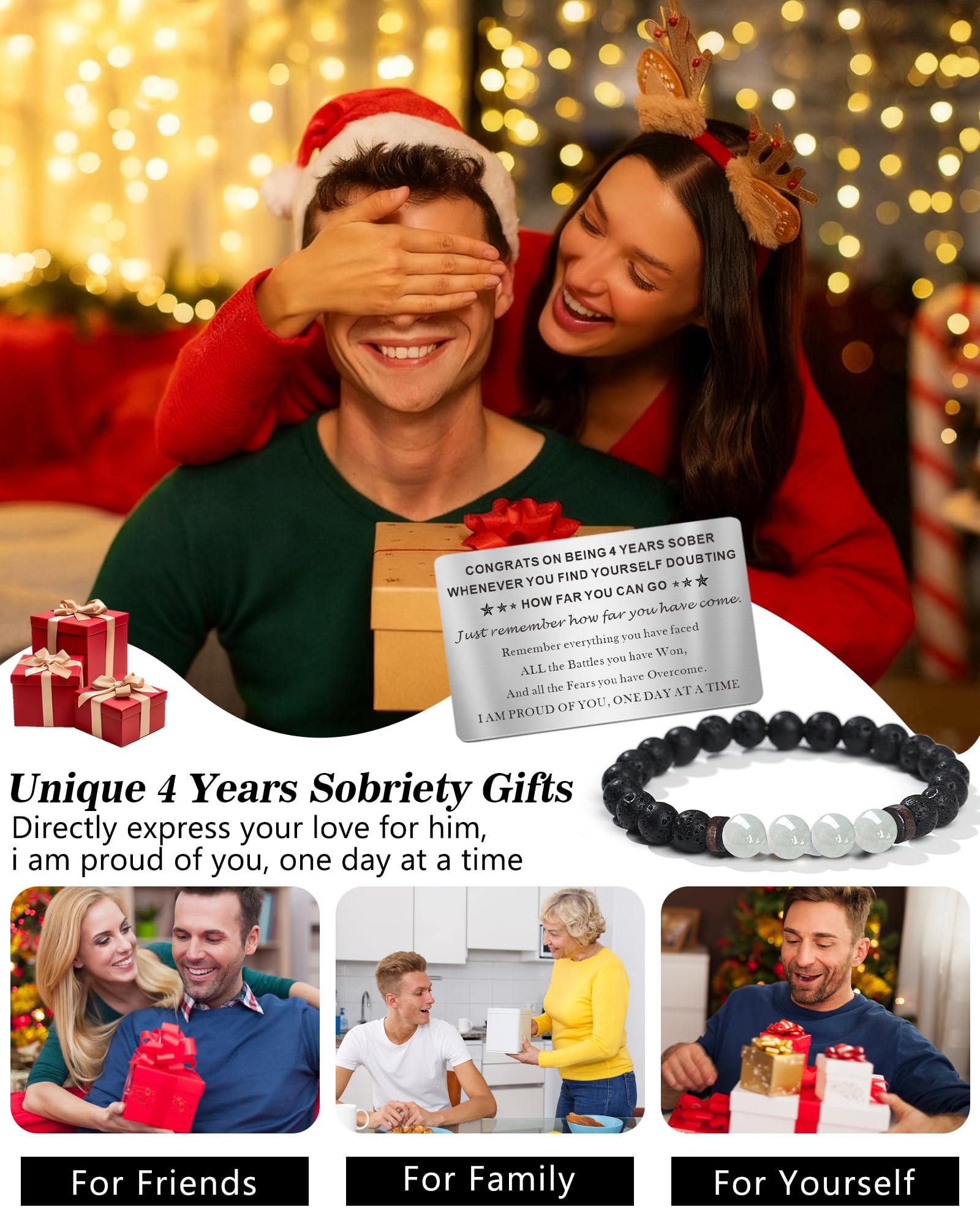 【Unique 4 Years Sobriety Gifts】This Moonstone bracelet with a inspirational 4 Years Clean & Sober Wallet Card definitely as a great sobriety gifts for men women, come with a nice gift box that can be given as a gift directly.The moonstone is excellent to help Purify Stress or Anxiety, Bring people Love and Protection, Guides make Right Decisions, attract Good Fortune. Courage and Confidence. work great as amazing Clean AA Recovery Sobriety Card, 6 months sober gifts for men women