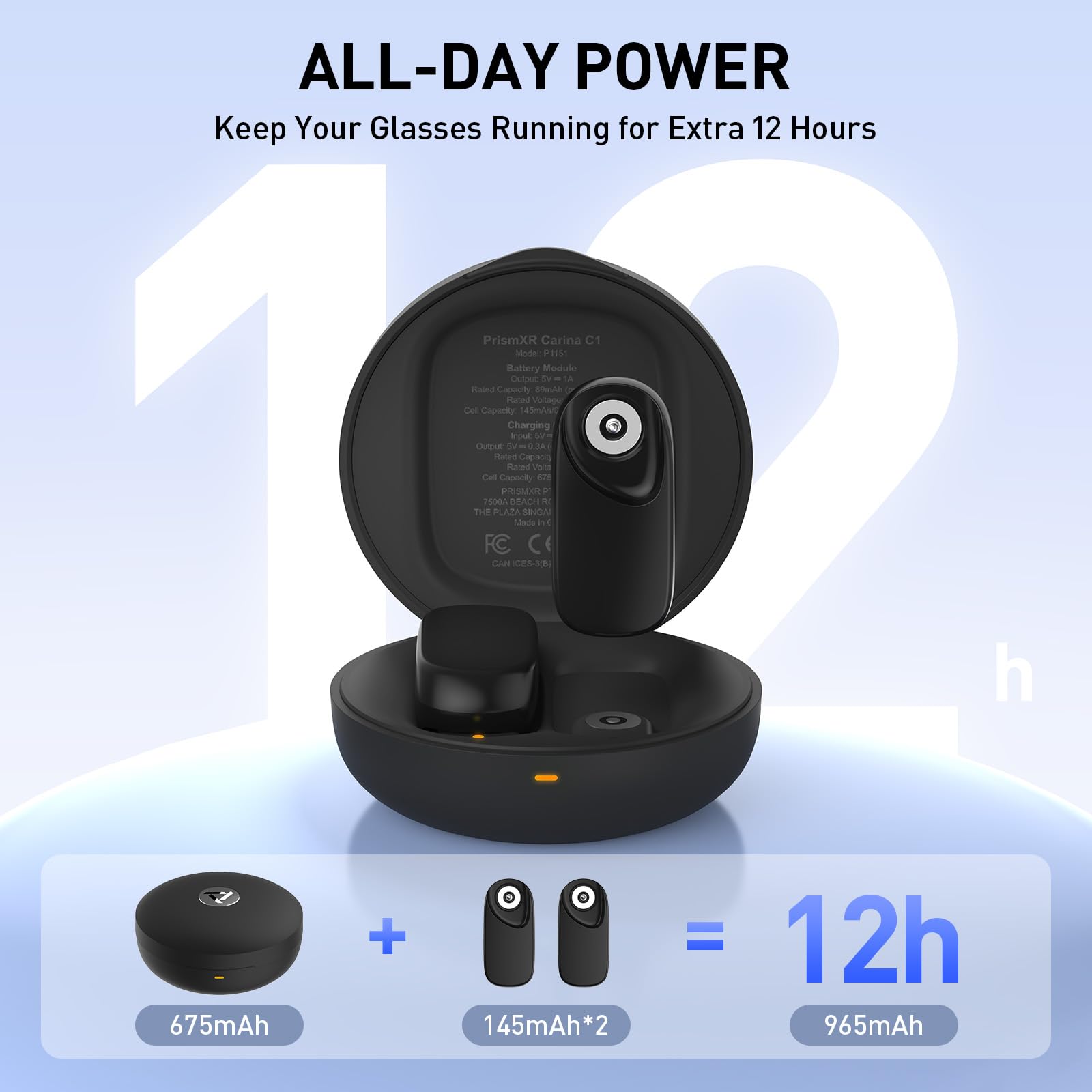 All-Day Power & Dual Charging Options: Swappable battery packs or a snap-on magnetic cable keep your glasses powered without interruption. Each battery adds 2.4 hours of use, and with a combined 965 mAh capacity from the two batteries and charging case, you can enjoy up to 12 hours of total power.