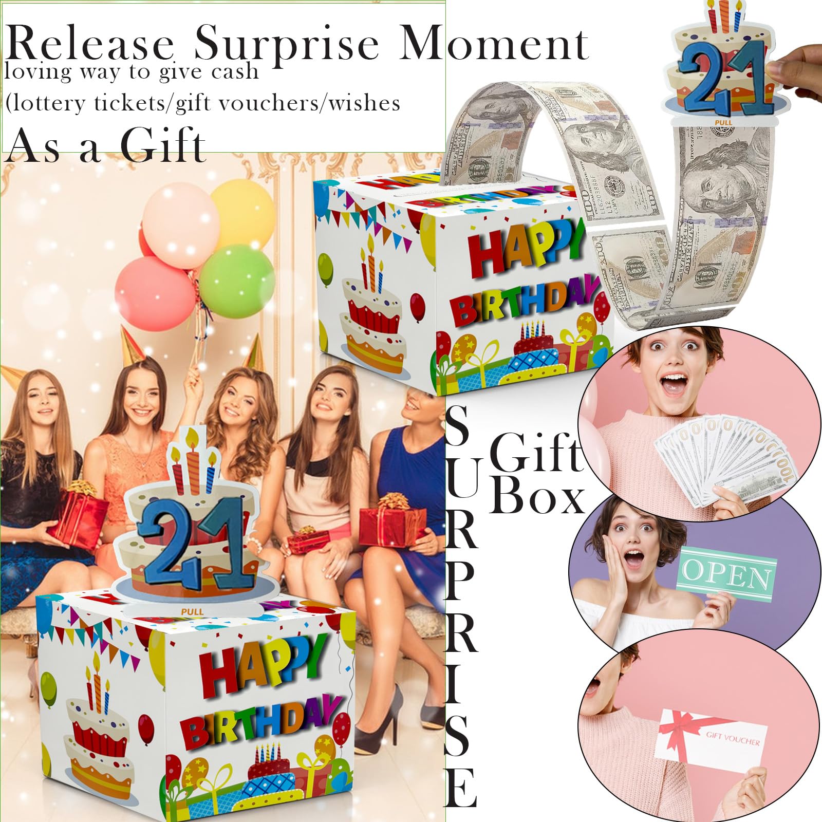 【Surprise Money Gift Box】Creating surprises is so easy, do you want to give your family and friends a surprise money gift ideas? DIY a surprise money pull out gift box, it's not only a release surprise moment but also a loving way to give cash(lottery tickets/gift vouchers/wishes)as a gift. Create a memorable surprises for your family and friends on this special day