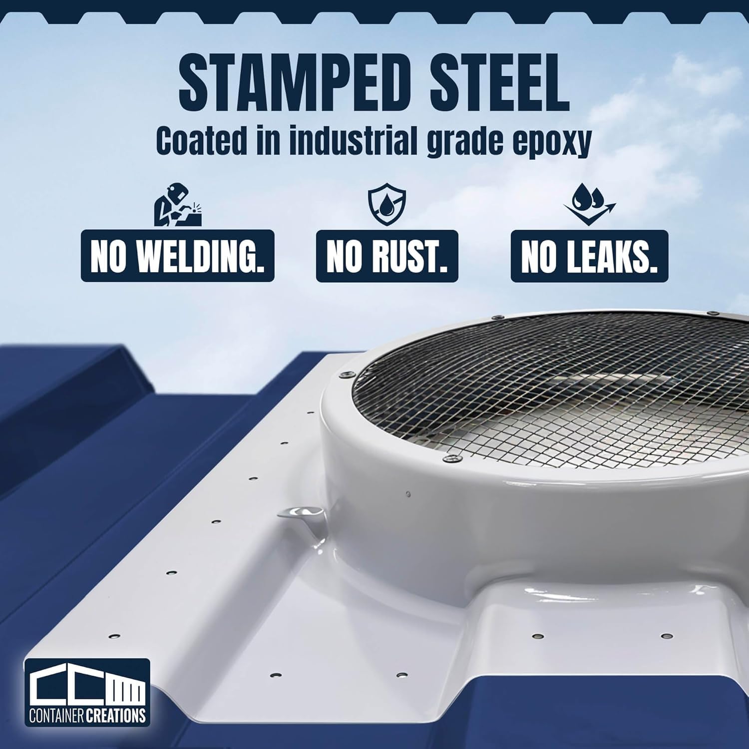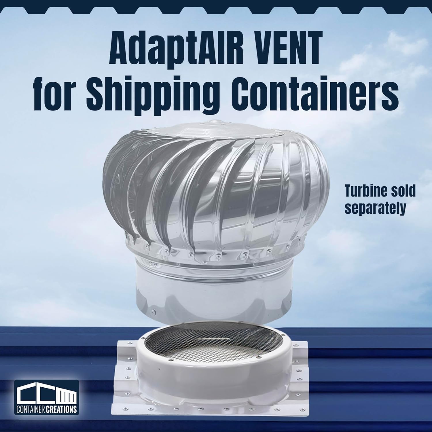 DURABLE 20-GAUGE STEEL WITH RUST-RESISTANT UV EPOXY COATING: Made from high-quality steel, our roof turbine vent adapter withstands harsh weather. Marine-engineered, AdaptAIR is designed for shipping container roofs, conex shipping container accessories, and roof requiring a whirlybird turbine vent, solar-powered vent turbine, or whirlybird vent. It provides lasting rust protection and safeguards against environmental damage.