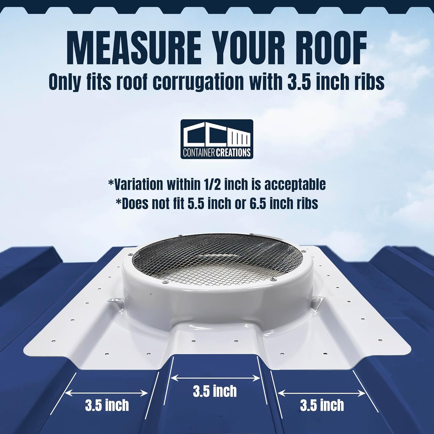 PRECISION-FIT FOR CONEX CONTAINER ROOFS WITH 3.5-INCH RIB SPACING: Our roof vent adapter fits Conex containers and shipping container roofs, enhancing airflow through 12 inch roof turbine vents, whirlybirds, or solar roof vents. Designed to prevent leaks, it supports reliable ventilation, making it ideal for conex container accessories and all shipping container ventilation needs. PLEASE NOTE: Vent system not included.