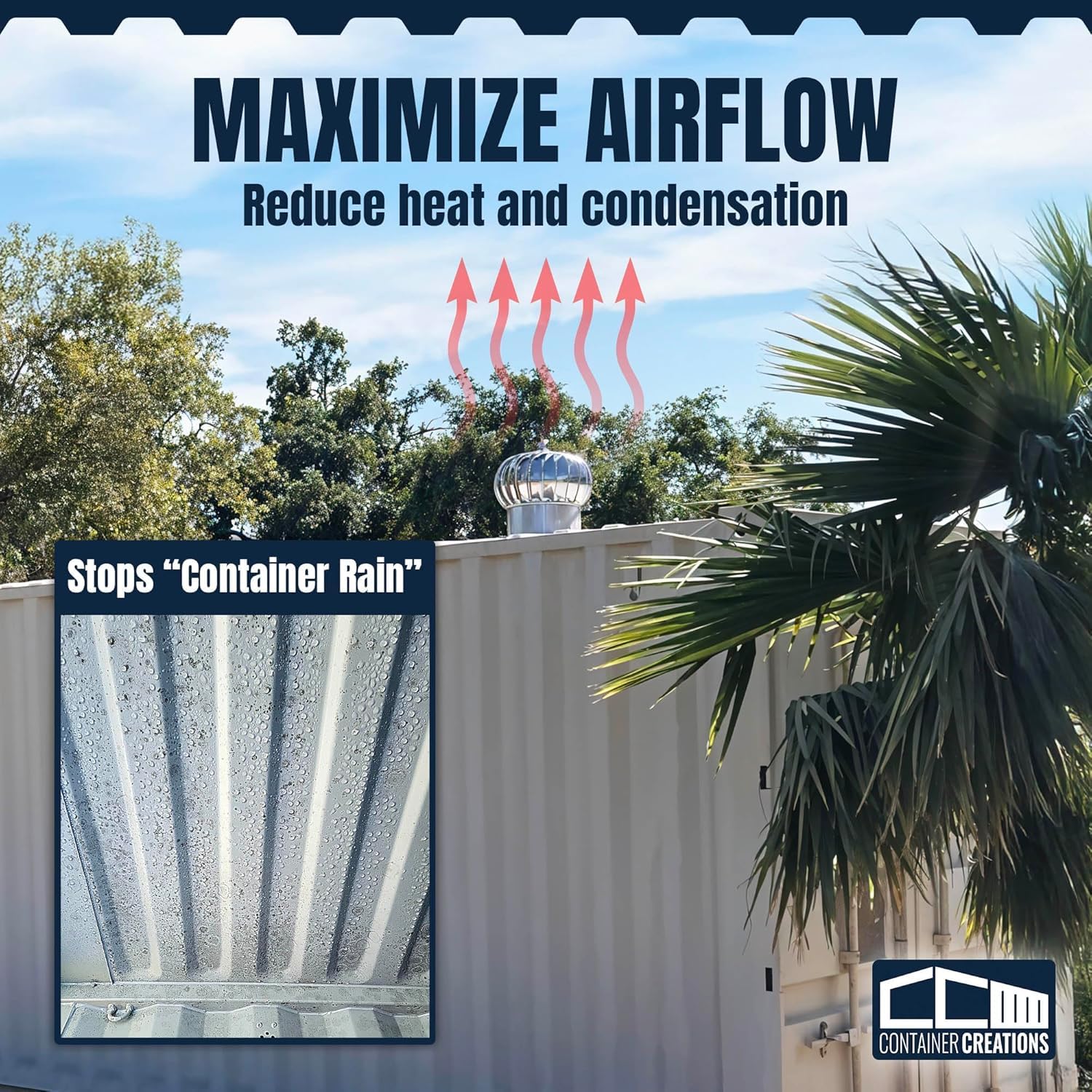 ENHANCED VENTILATION FOR 12 INCH ROOF TURBINE AND SOLAR ROOF VENT SYSTEMS (NOT INCLUDED): Specially designed to fit standard 12 inch roof turbine vents, solar powered roof vent systems, and whirlybird roof vents, our roof vent adapter enhances ventilation for conex container or cargo container storage. Great for reducing heat in shipping container houses, it supports better airflow, helping protect your stored items from high temperatures and moisture-related damage.